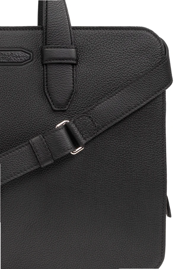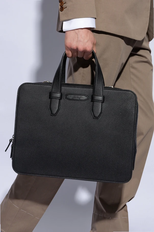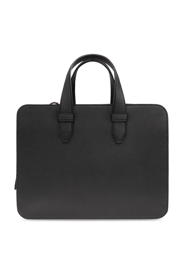 Introducing the quintessence of professionalism and minimalist design - the Brioni Handheld Document Bag . Crafted from premium grain-textured leather, this exquisite piece is not merely an accessory but a statement of elegance and functionality. Its sleek, rectangular silhouette is perfectly sized to accommodate documents or a laptop, making it an indispensable companion for the discerning professional.