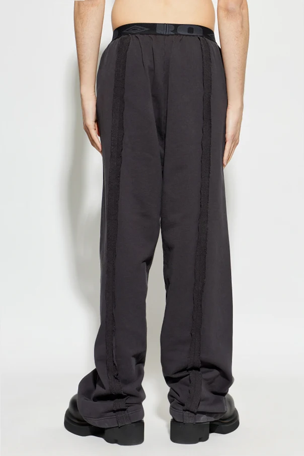 The elastic waistband features a prominent, repeating UMBRO signature and an accent tag with the brand’s iconic double-diamond logo on the left thigh, underscoring the garment’s authenticity and prestige. The supple cotton composition assures exceptional comfort and effortless movement, making these pants an enduring staple in any exclusive wardrobe.
