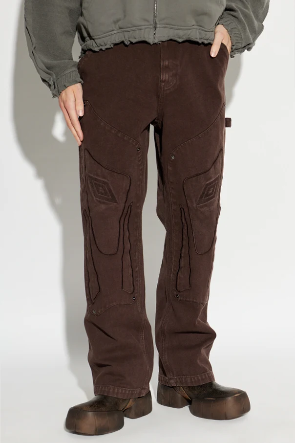 These classic brown jeans by Umbro unveil a refined yet contemporary silhouette, tailored in a regular fit with straight legs and a standard-rise waist. The robust denim, crafted exclusively from premium cotton, radiates a deep brown hue and a substantial, non-stretch texture evocative of timeless jeanswear.