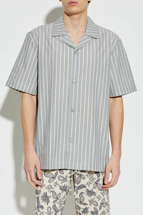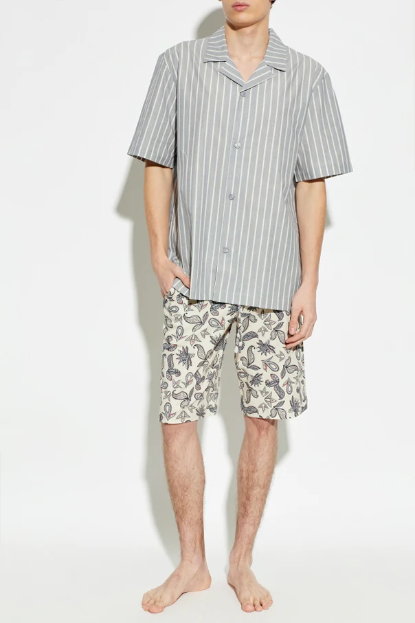 Discover refined relaxation with the Night & Day Men’s Nightshirt by Hanro, presented in a distinguished gray hue adorned with broad, luminous stripes. This nightshirt features a classic, relaxed silhouette with gently short sleeves, a straight hem, and a traditional lay-flat collar—elements that evoke understated sophistication.