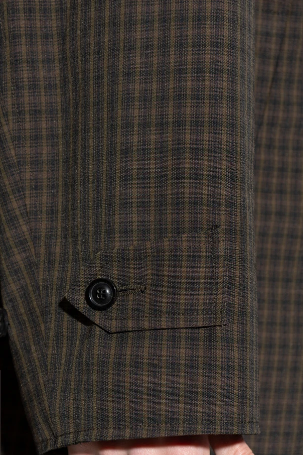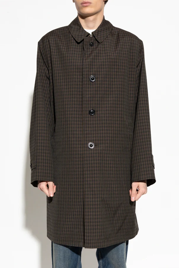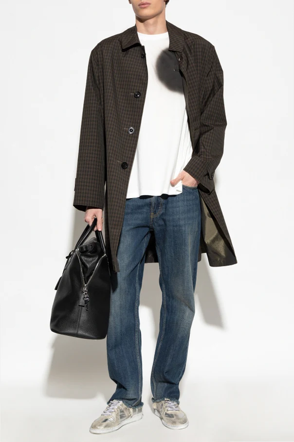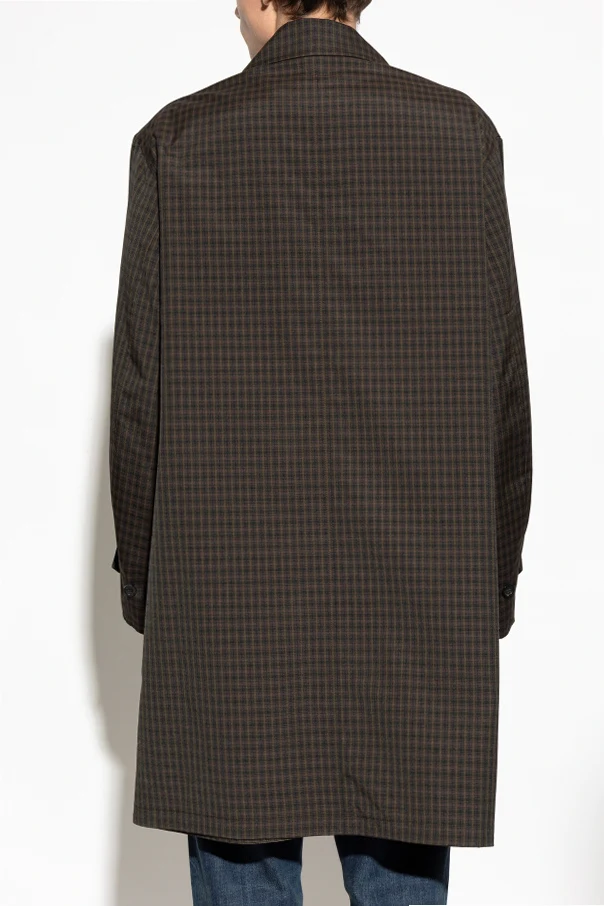 Imbued with timeless sophistication, this plaid coat from Maison Margiela masterfully reinterprets classic elegance with a modern sensibility. Rendered in a meticulously woven, matte fabric, its brown and black check pattern exudes understated luxury, while the subtle olive-toned lining—finished with a luminous luster—speaks to the brand’s dedication to refined craftsmanship.
