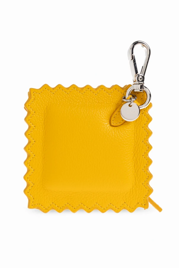Infuse your ensemble with refined whimsy through this sophisticated bag charm by Fendi , exquisitely rendered in the shape of ravioli. The distinctly square silhouette, complete with sculpted, scalloped edges, pays homage to Italian artistry, while the sumptuous, grain-textured leather asserts a sense of luxury and tactile delight.