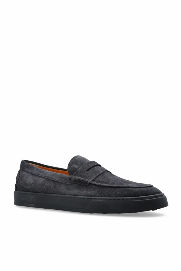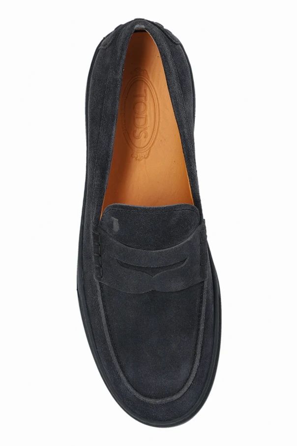 These navy blue leather moccasins by Tod’s redefine timeless sophistication with their understated elegance and expert Italian craftsmanship. The elongated silhouette and rounded toe exude a modern classic charm, while the low-cut profile accentuates the refined contour of the foot.