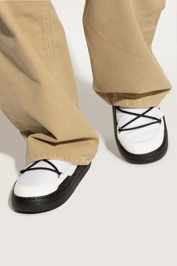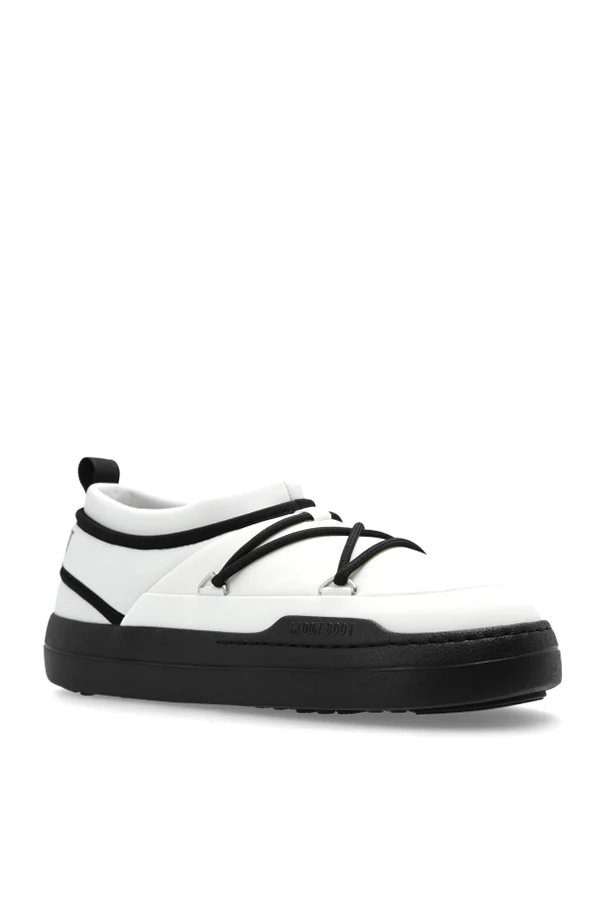 Dominated by a pristine white hue accented with sophisticated black details, these boots feature a low-cut silhouette reminiscent of classic sports shoes. The robust sole, crafted from high-quality rubber, offers exceptional insulation against the cold, ensuring warmth and comfort during the harshest winter days.