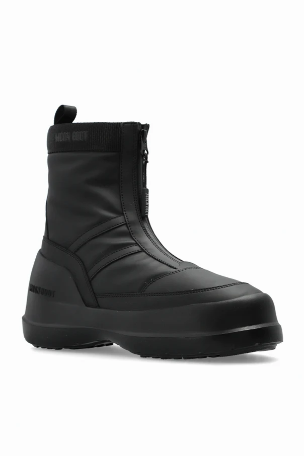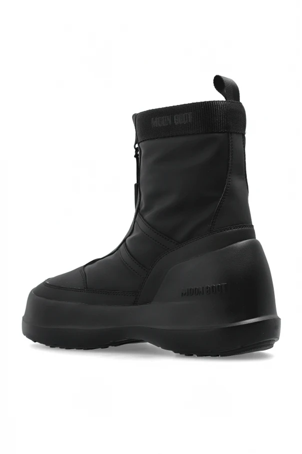 The boots boast a rounded toe and a high shaft, providing superior protection against the cold. A sleek, waterproof exterior made from premium materials ensures your feet remain dry, while the convenient front zipper allows for effortless wearability. The iconic Moon Boot logo graces the upper and side, reinforcing the luxury of this distinguished footwear.