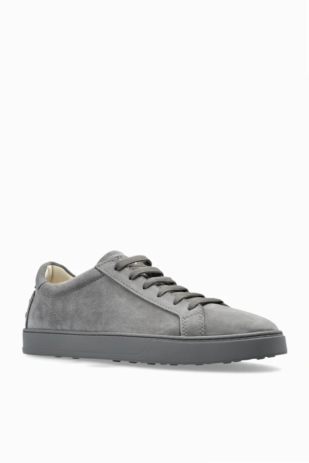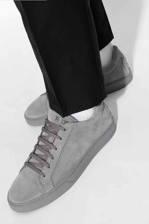Introducing the epitome of refined casual footwear: Tod's Grey Suede Low-Top Sneakers . These sneakers are crafted from sumptuous gray suede, imbuing them with an air of sophistication and understated elegance. Their low-profile silhouette is the hallmark of classic sneaker design, ensuring a timeless appeal.