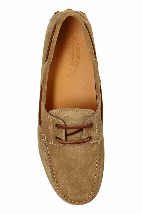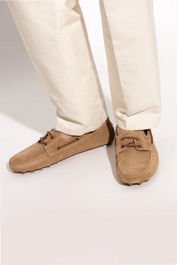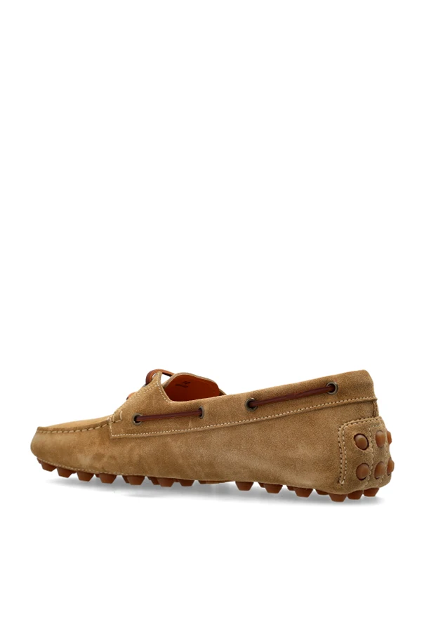 Expertly made from premium suede, these loafers exude elegance with their rich texture . The design is accentuated by brown laces threaded through metal eyelets, prominent stitching on the front, and distinctive rubber nubs on the heel, a hallmark of driving shoes.