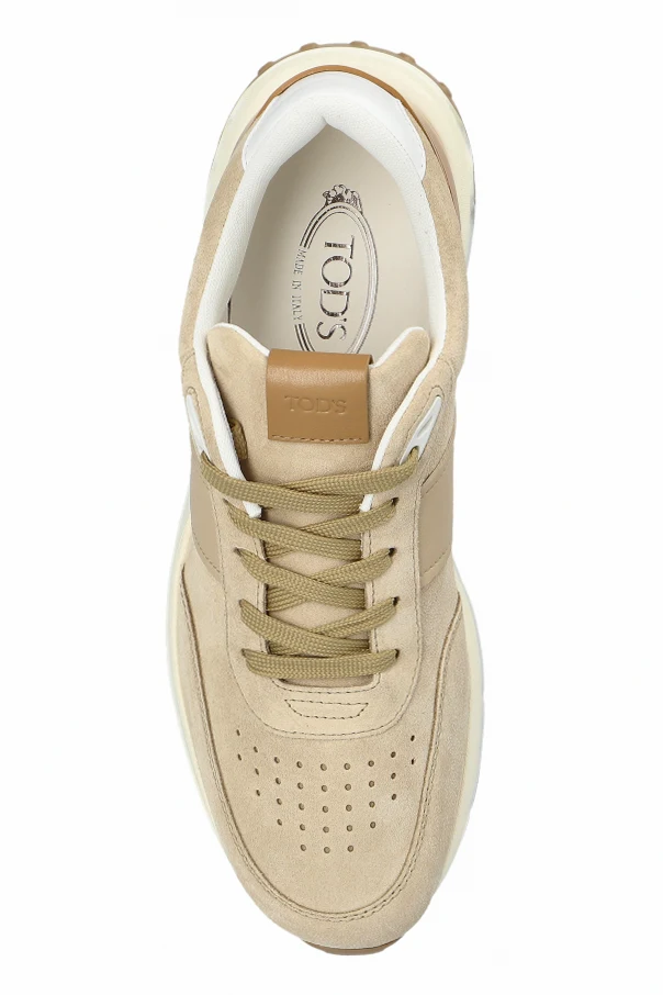 Experience understated sophistication with these beige low-top sneakers for men from Tod’s , masterfully crafted for the discerning individual. The exquisite blend of supple suede along the toe and sides, elevated by smooth leather accents on the heel and side panels, delivers both refinement and lasting durability. A slightly rounded toe, clean lines, and subtle color contrasts—featuring a light sole and tasteful brown and white details—create a profile that is at once modern and timeless.