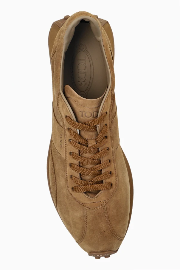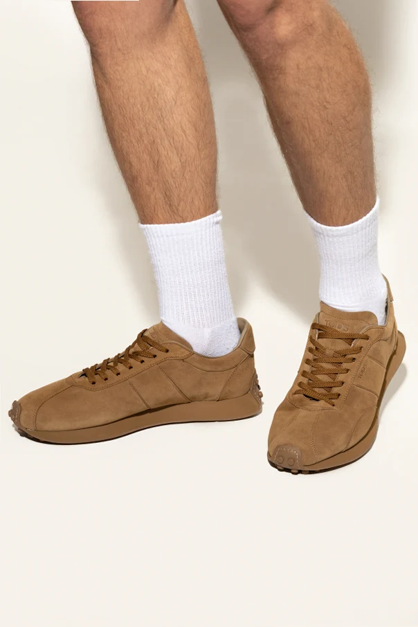 Exuding refined sophistication, these brown suede low-top sneakers from Tod’s seamlessly merge vintage inspiration with contemporary minimalism. Crafted from premium natural suede, both supple and luxurious to the touch, their classic silhouette features a sleek, rounded toe and a streamlined low-profile collar. Every panel is thoughtfully constructed, emphasizing subtle stitching and smooth lines for an understated, yet distinctive finish.