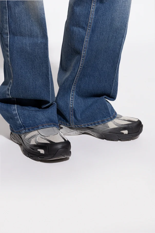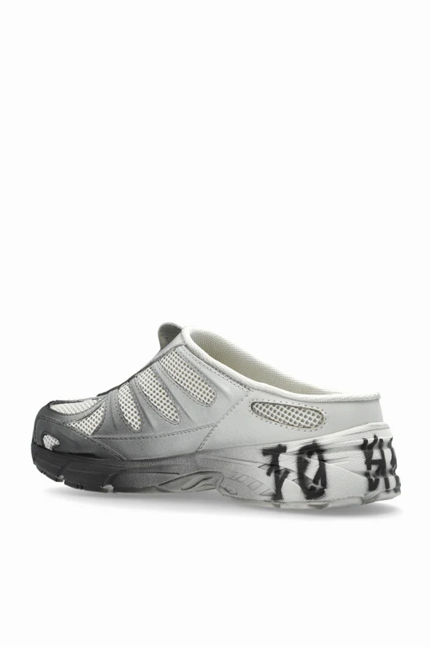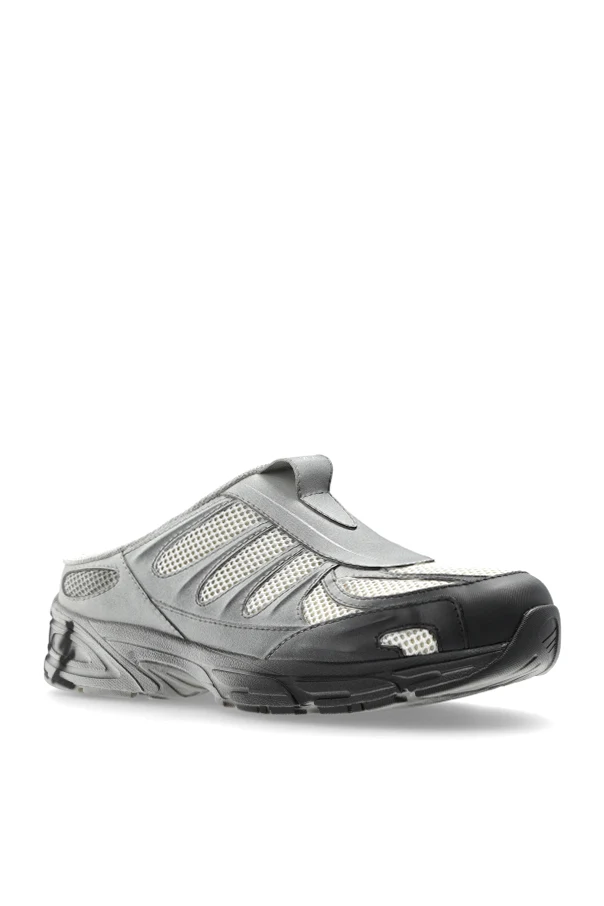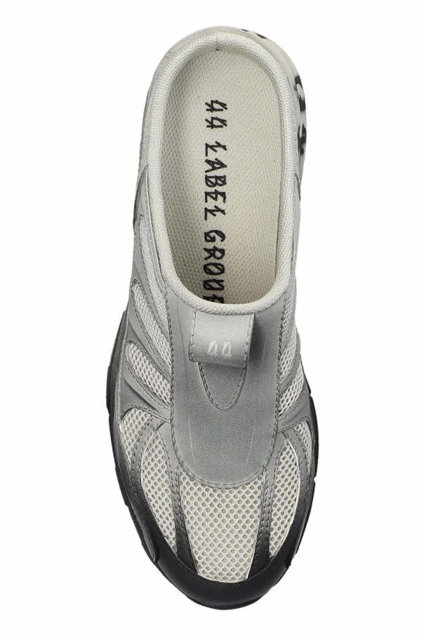 The Dragger sneakers by 44 Label Group reimagine contemporary footwear with a slip-on clog silhouette. Characterized by a distinctive low-top shape and open heel, these shoes are as avant-garde as they are functional. The upper features a dynamic interplay of mesh alongside smooth, nubuck-inspired synthetic panels, delivering breathability and sleek surface contrasts. A bold, darker gradient at the forefoot and outsole transitions elegantly into a subdued gray, adding visual intrigue.