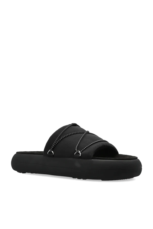 Discover the refined allure of the MB ICON SLIDE sandals in classic black , where innovative design meets effortless sophistication. These slides boast a robust, anatomically rounded sole that ensures supreme comfort and contemporary elegance with every step.