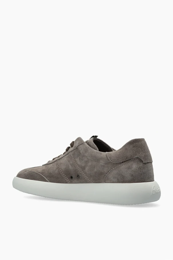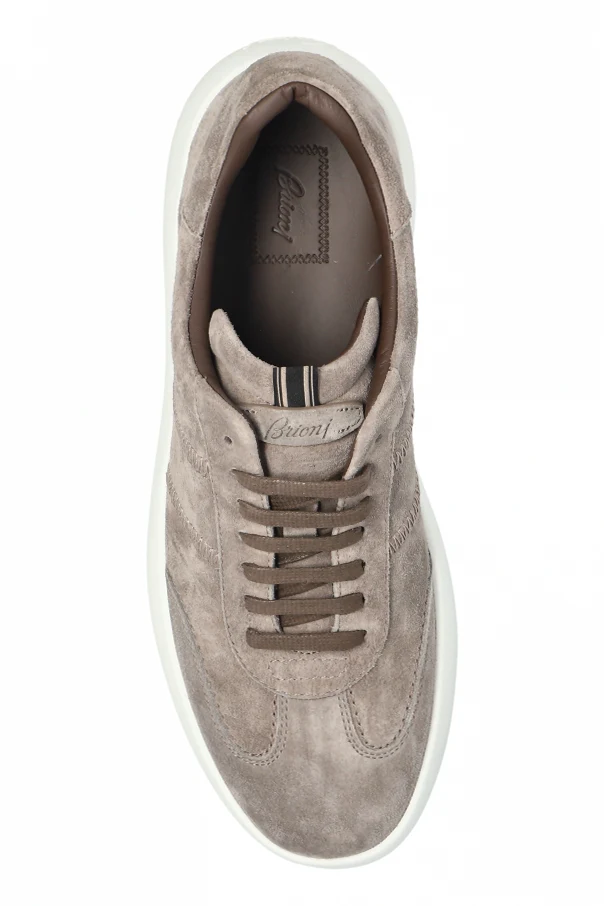 Discover a masterfully crafted blend of sophistication and modernity with these gray suede low-top sneakers by Brioni . The silhouette is sleek and timeless, featuring a subtly rounded toe and a minimalist, single-tone design. Intricate stitching offers discernible yet understated refinement, while premium suede graces the exterior with a matte, velvety texture that exudes effortlessness and exclusivity.