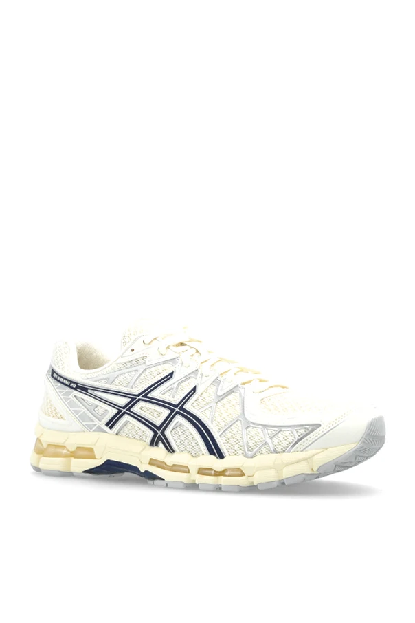 The GEL-KAYANO 20 by ASICS presents a refined fusion of technical innovation and contemporary design. Cloaked in a sophisticated cream hue, these men's low-top sneakers feature a breathable mesh upper, meticulously complemented by stabilizing synthetic overlays. Dynamic stitching and layered paneling impart a distinctively athletic aesthetic, while prominent dark ASICS stripes provide a signature accent of elevated style.