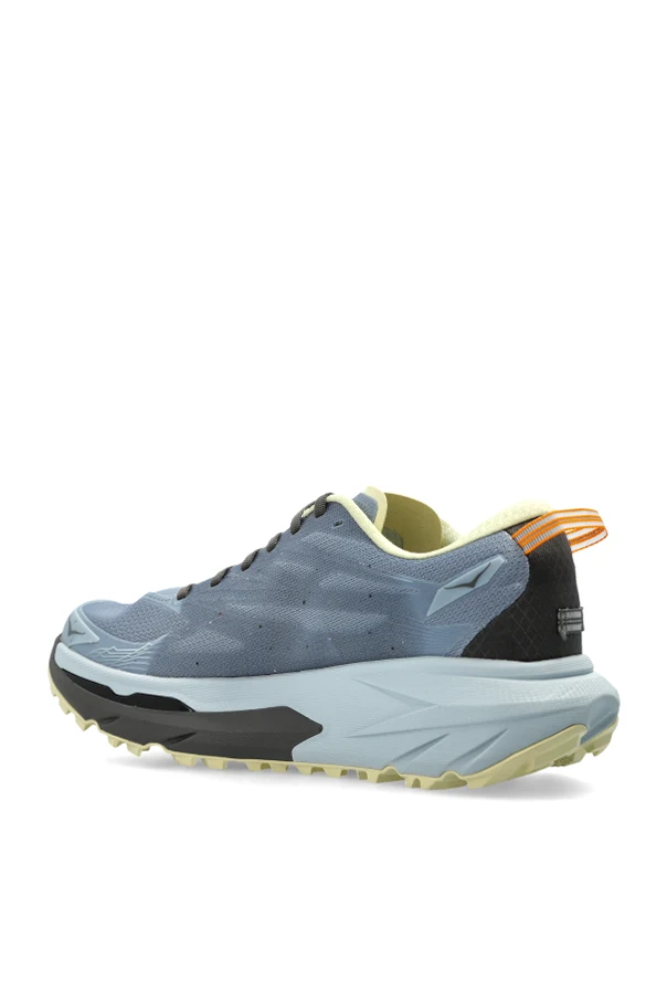 Discover the refined performance of the HOKA MAFATE 5 men’s sports sneakers in an elegant, subdued blue. Their dynamic silhouette and robust trail sole evoke an athletic sophistication ideal for conquering rugged terrains. The prominent, sculpted sole, crafted from premium rubber, delivers exceptional grip and stability on uneven ground.
