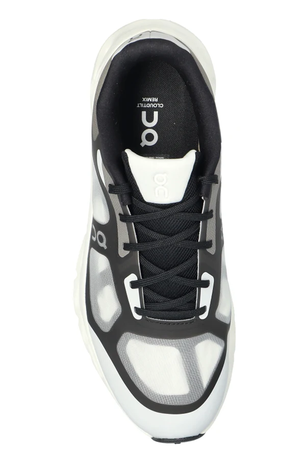 Experience the next level of urban sophistication with the Cloudtilt Remix men’s sports sneakers in classic black . Exuding a modern sensibility, these sneakers unite bold geometric stitching with translucent side panels for a forward-thinking, technological flair. The distinctive, slightly rounded silhouette is accentuated by a substantial, cushioned sole—delivering remarkable shock absorption and all-day comfort.