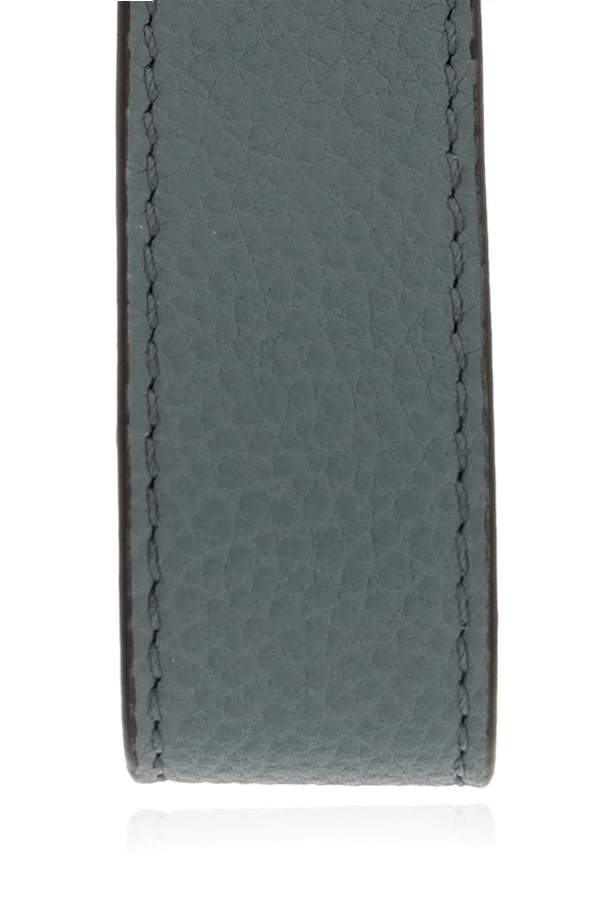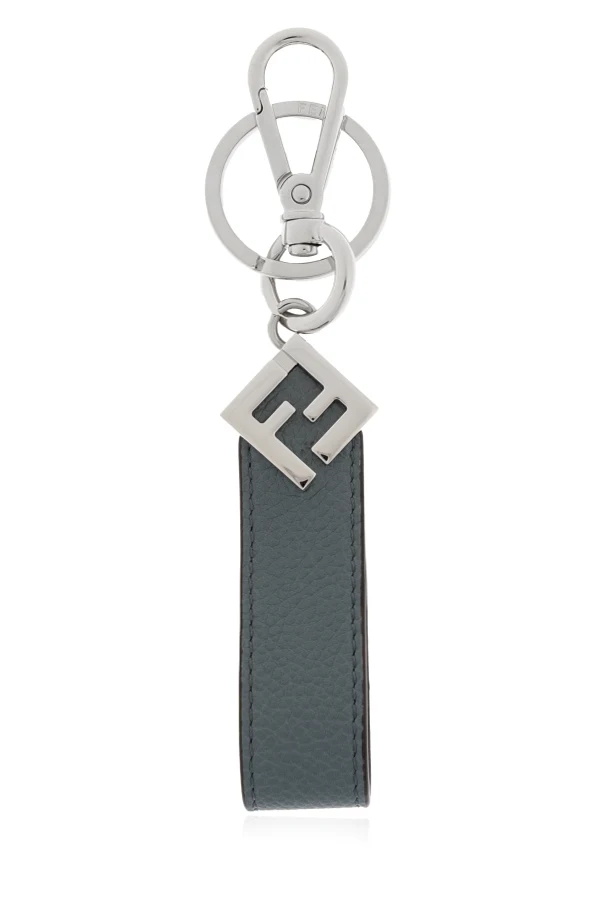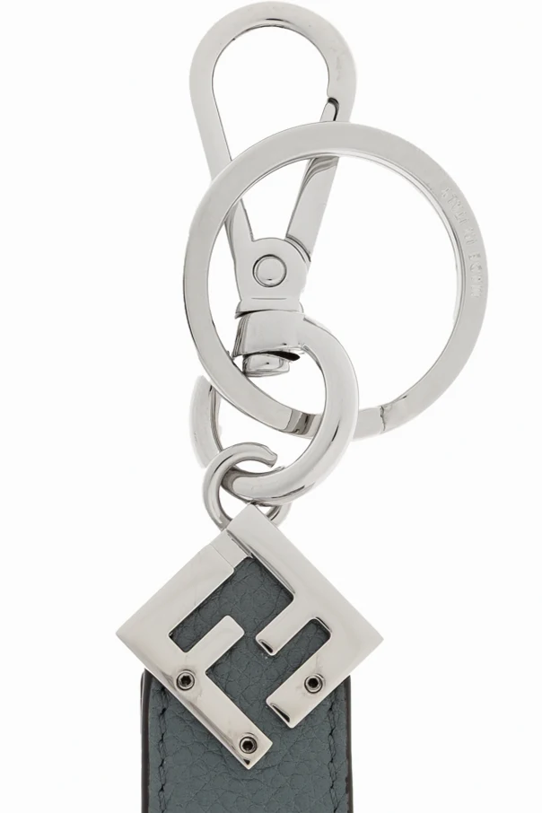 Elevate your everyday essentials with this Fendi Logo Keychain , a refined accessory crafted for those who appreciate enduring elegance. The piece features a vertical, rectangular strap made from select leather in a sophisticated, understated shade of blue . Immaculately appointed, robust metal components in a polished silver hue—comprising a keyring, sturdy carabiner, and an artful geometric emblem—add a commanding presence and contemporary flair.