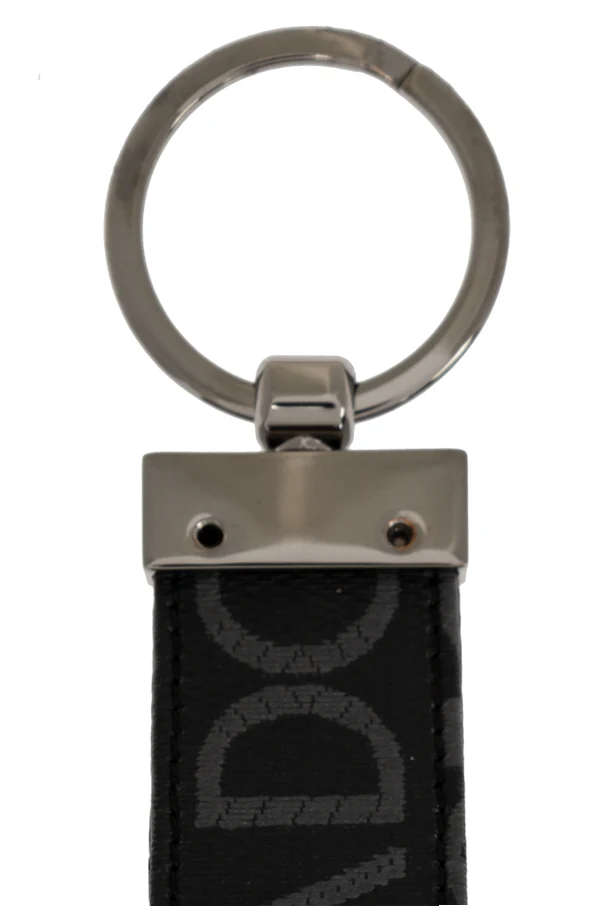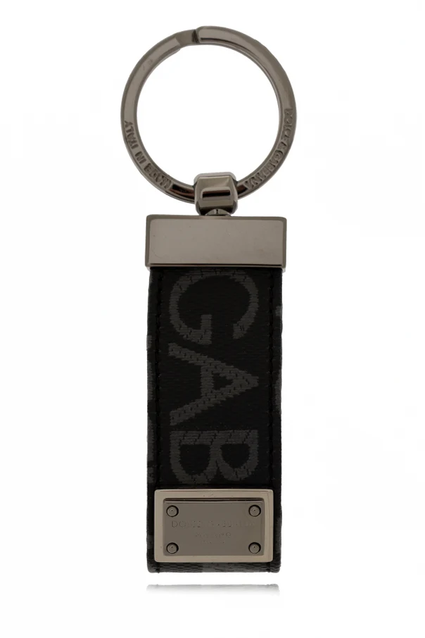 Silver-tone keyring with a black pendant and logo-engraved patch from Dolce & Gabbana.