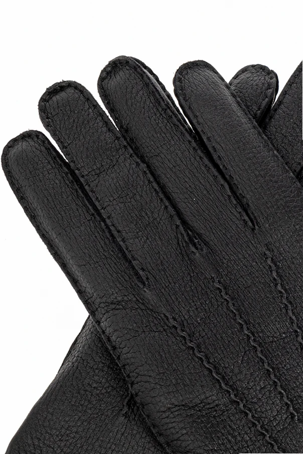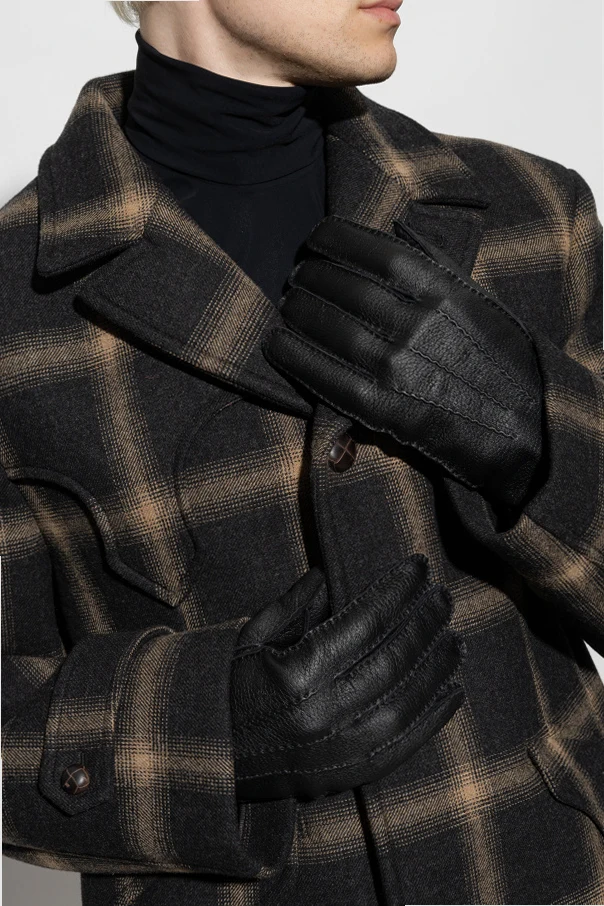 Introducing the exquisite Brioni Black Leather Gloves , a testament to timeless sophistication and refined craftsmanship. Skillfully fashioned from premium natural leather with a pronounced, subtly grained texture, these gloves provide a harmonious balance of supple softness and lasting resilience.