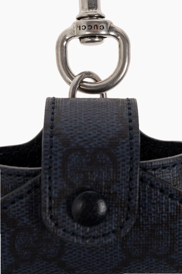 Designed with practicality in mind, the case boasts a secure snap closure to safeguard your AirPods and a metal carabiner, adorned with the iconic Gucci logo, for effortless attachment to bags or belts.
