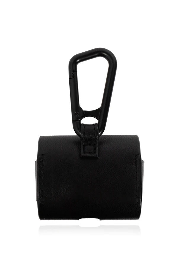 Its rectangular silhouette with gently rounded edges provides a refined aesthetic, while a sturdy black carabiner atop offers secure attachment to your bag or keys. The case features a protective flap closure, ensuring your AirPods remain safe and secure.