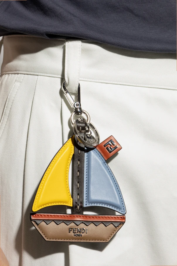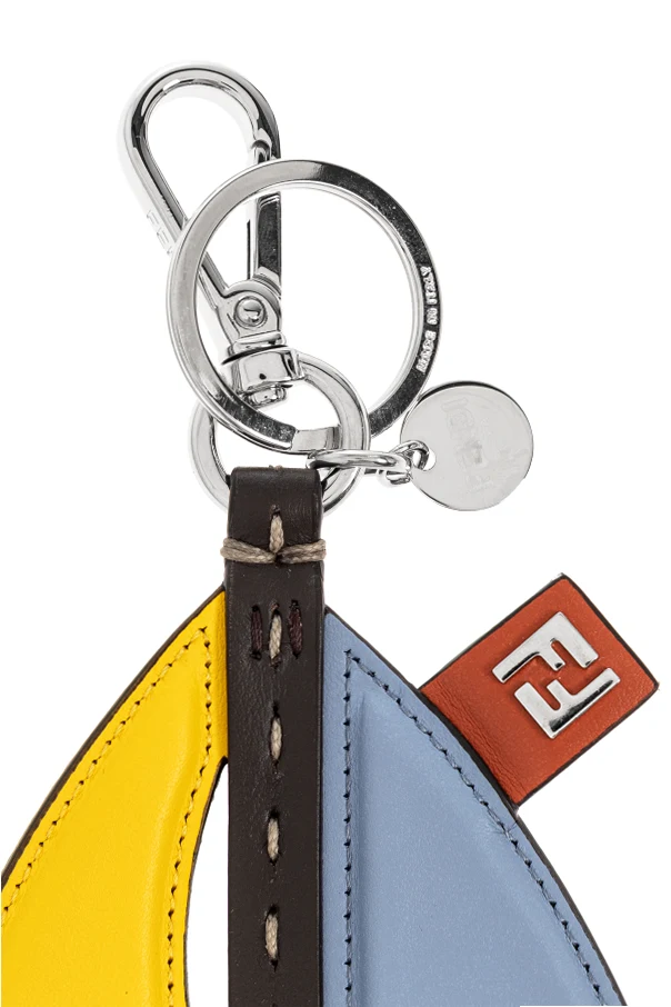 Introducing the Boat-Shaped Keychain by Fendi : a striking fusion of artistry and heritage, meticulously crafted to embody contemporary Italian elegance. With its stylized silhouette—two sails forming a geometric sailboat—this keychain captivates with both vivid multicolor panels and the iconic FF monogram, each side offering a unique visual experience.