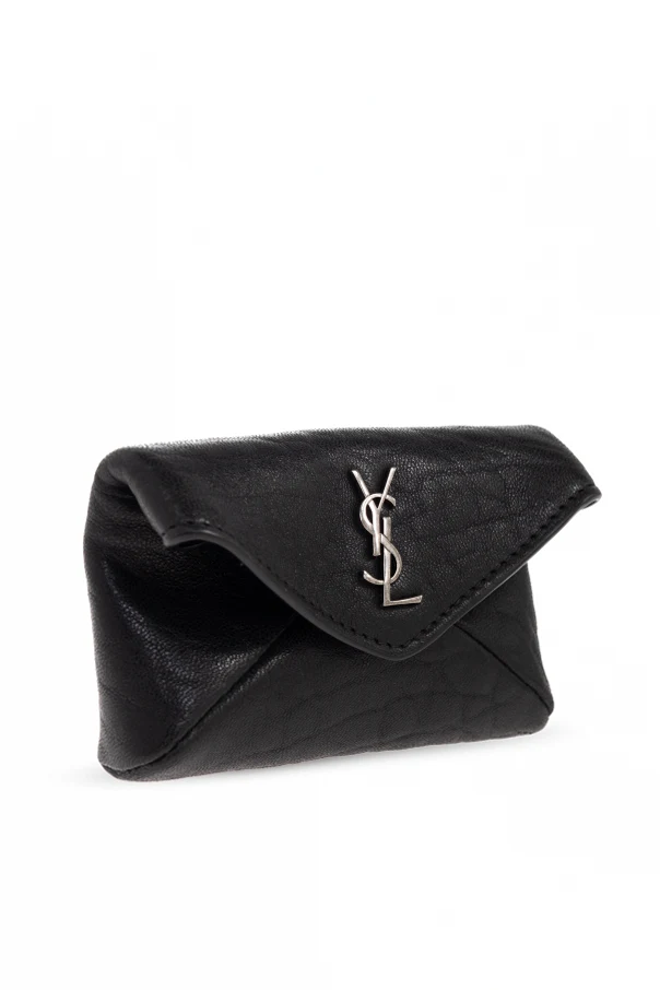 Discover a refined balance of sophistication and utility with this Leather Key Pouch by Saint Laurent . Impeccably crafted from exquisite natural lambskin leather, its gently textured, subtly matte finish evokes understated elegance. The design recalls a petit envelope, with rounded edges and a sleek, structured silhouette that fits effortlessly in the palm or pocket.