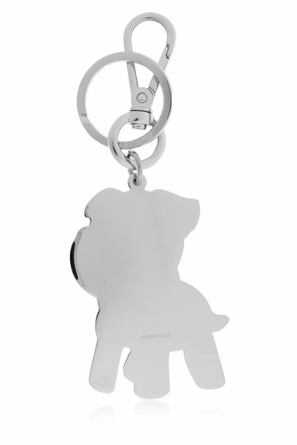 Further distinguishing this piece, the dog's neck is accented with a delicate collar and an engraved pendant—an elegant nod to designer heritage. The mirror-like sheen and intricate detailing reflect Fendi’s commitment to unparalleled craftsmanship, making this accessory a distinguished companion for key organization or as a tasteful adornment on your bag.