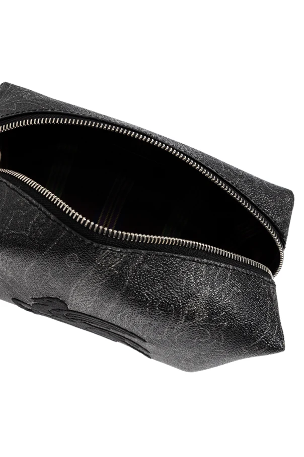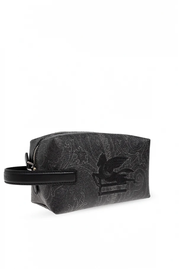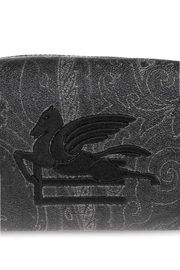 The lustrous, subtle paisley motif in shades of gray elegantly shimmers across the surface, evoking the brand’s storied heritage and connection to intricate Asian-inspired artistry. Distinctive yet discreet, the piece is adorned with a prominent, exquisitely embroidered black Pegasus logo at the center—an unmistakable symbol of Etro’s legacy.