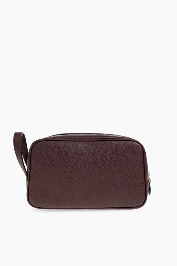 Practicality meets luxury in the spacious interior, secured by a polished silver double zipper. A supple leather side handle ensures effortless portability, making this cosmetic case both functional and undeniably sumptuous—an essential addition to any sophisticated travel routine.
