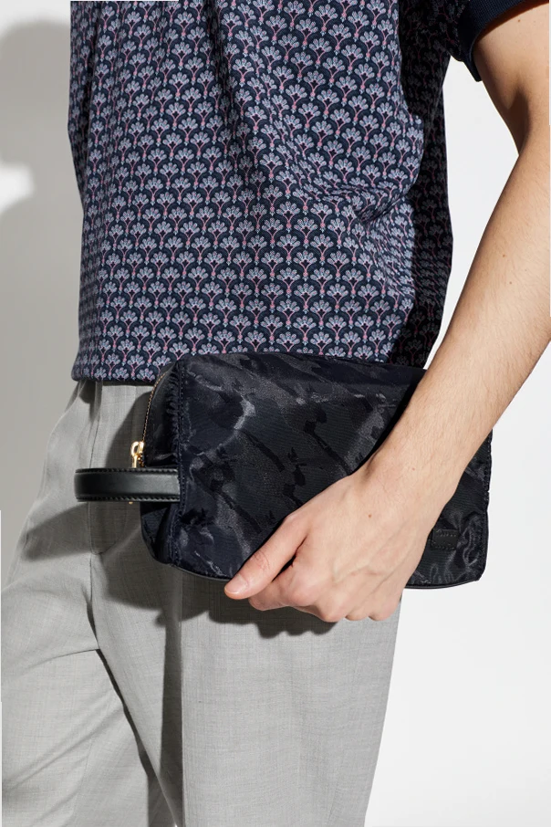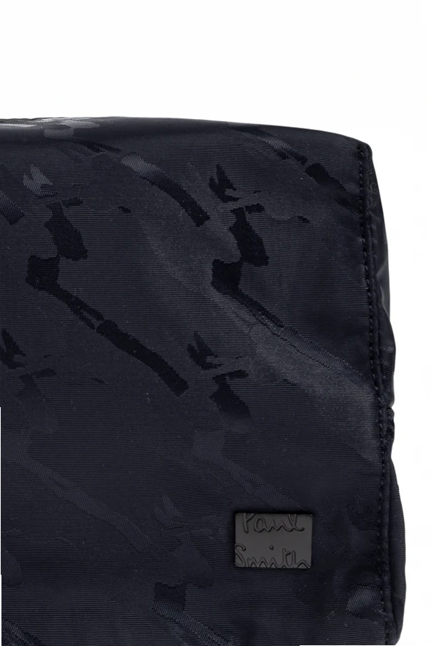Discover understated sophistication with this Paul Smith Black Toned Logo Patch Cosmetic Bag —a refined accessory for the modern gentleman. The rectangular silhouette with gently rounded edges and an expanded base ensures remarkable spaciousness and reliable stability, making it a remarkable companion for travel or daily routines.