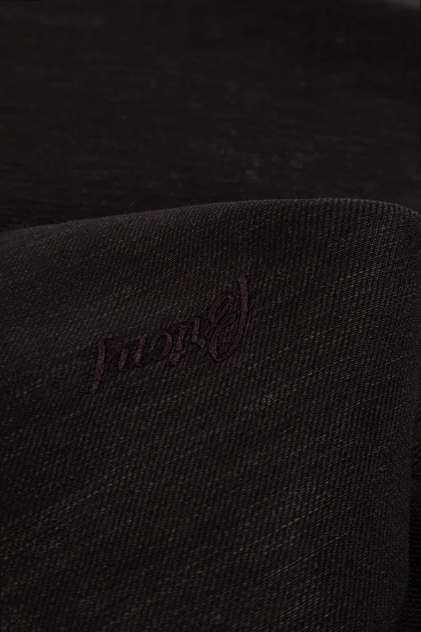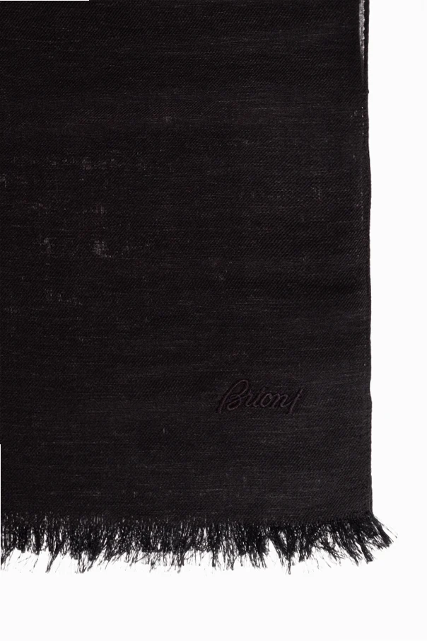 The piece is distinguished by a tonally embroidered Brioni logo at the corner—a discreet signature of distinction, adding to the scarf’s quietly luxurious appeal.