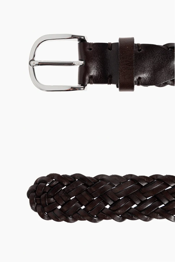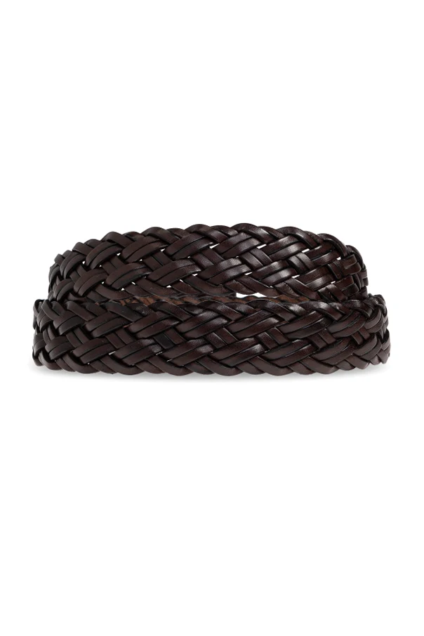 Discover the art of understated luxury with this woven leather belt in rich brown from Brioni. Impeccably crafted from premium, smooth natural leather, its dense, intricate braiding delivers superb elasticity and refined comfort. The classic silhouette boasts a slightly rounded edge and a polished silver-toned buckle—subtle details that underscore enduring sophistication.