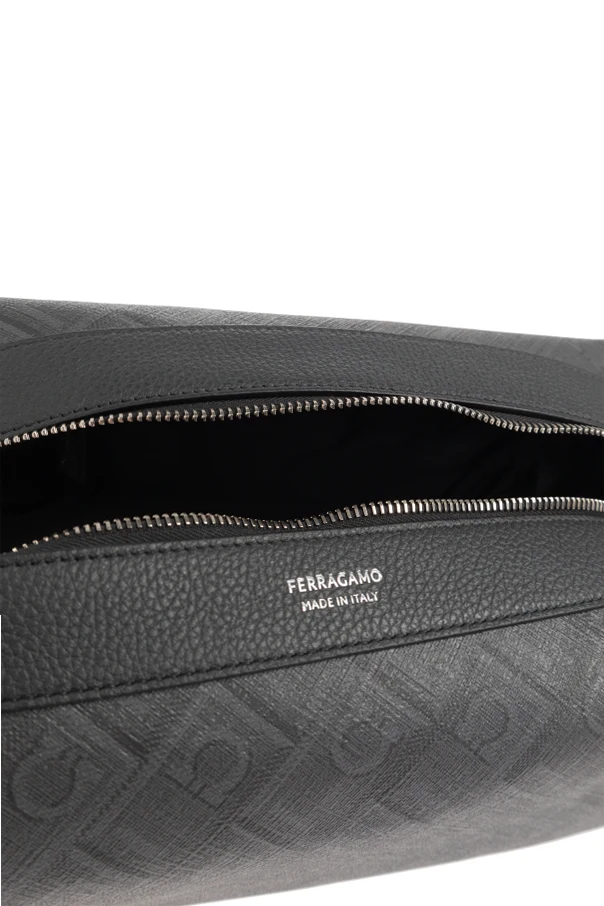 Inside, a crisp white stamp— “FERRAGAMO MADE IN ITALY” —quietly affirms its elite provenance. The main compartment secures your essentials with a high-quality metal zipper, merging functionality with refined style. Perfect for discerning individuals, it encapsulates both artistry and practicality in every detail.