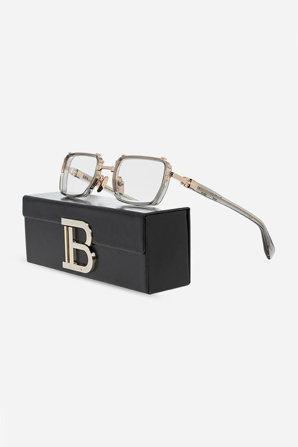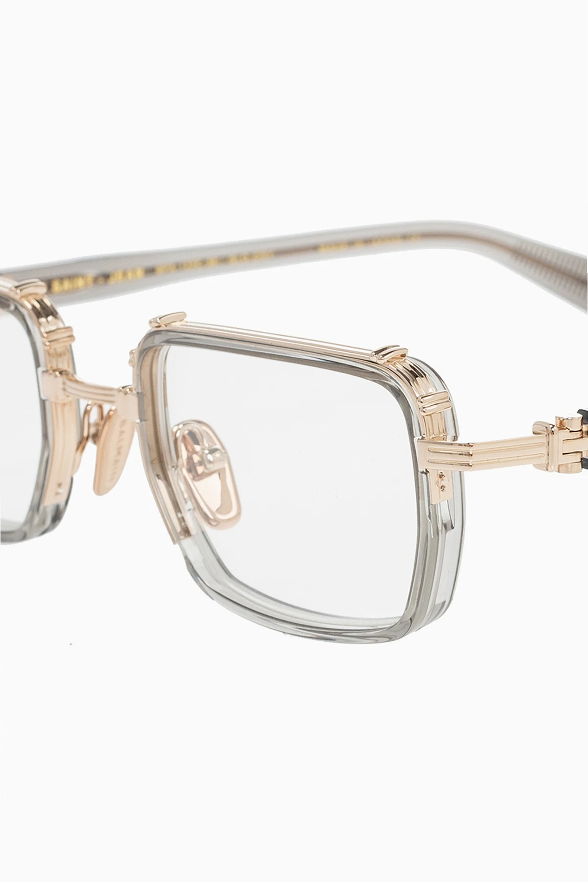 Gold-tone and transparent grey optical glasses from Balmain. Enriched by logo detailing, this pair comes with a silver-tone branded leather case.
