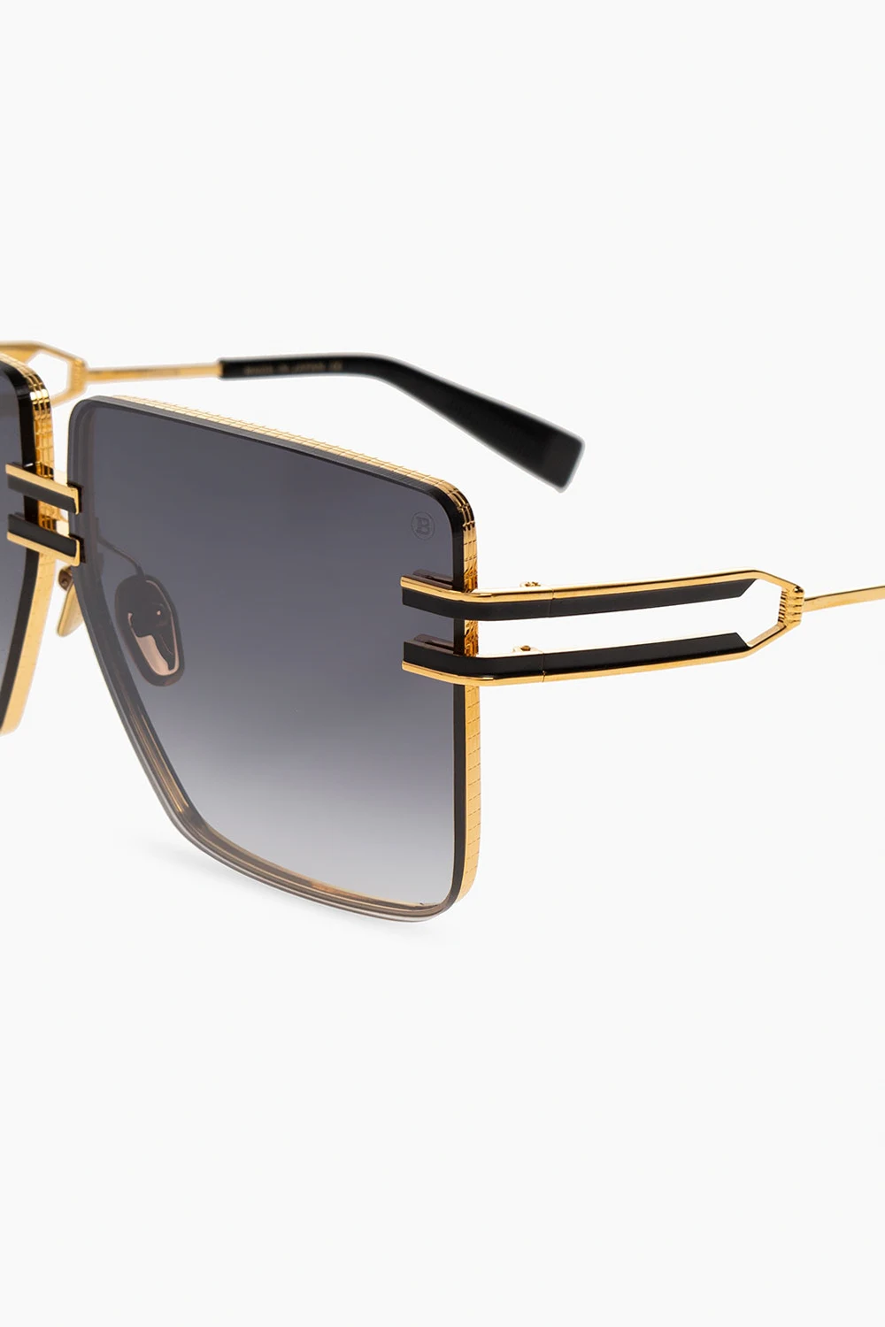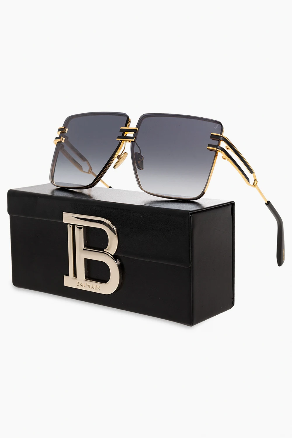 Gold-tone and black square sunglasses from Balmain. With an oversize silhouette, this model features decorative temples with an engraved logo and certified grey lenses with 100% UVA/UVB protection. Case included.