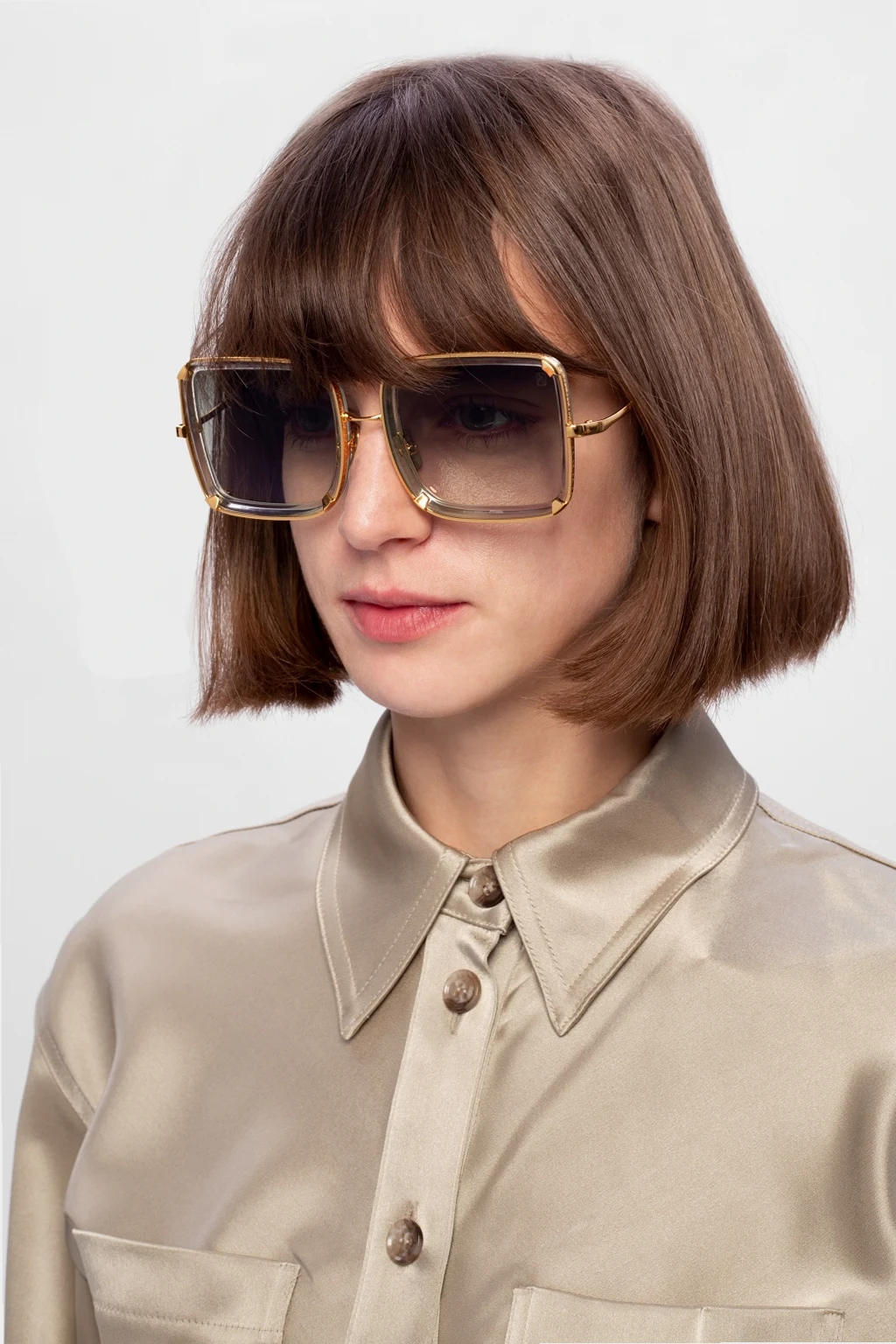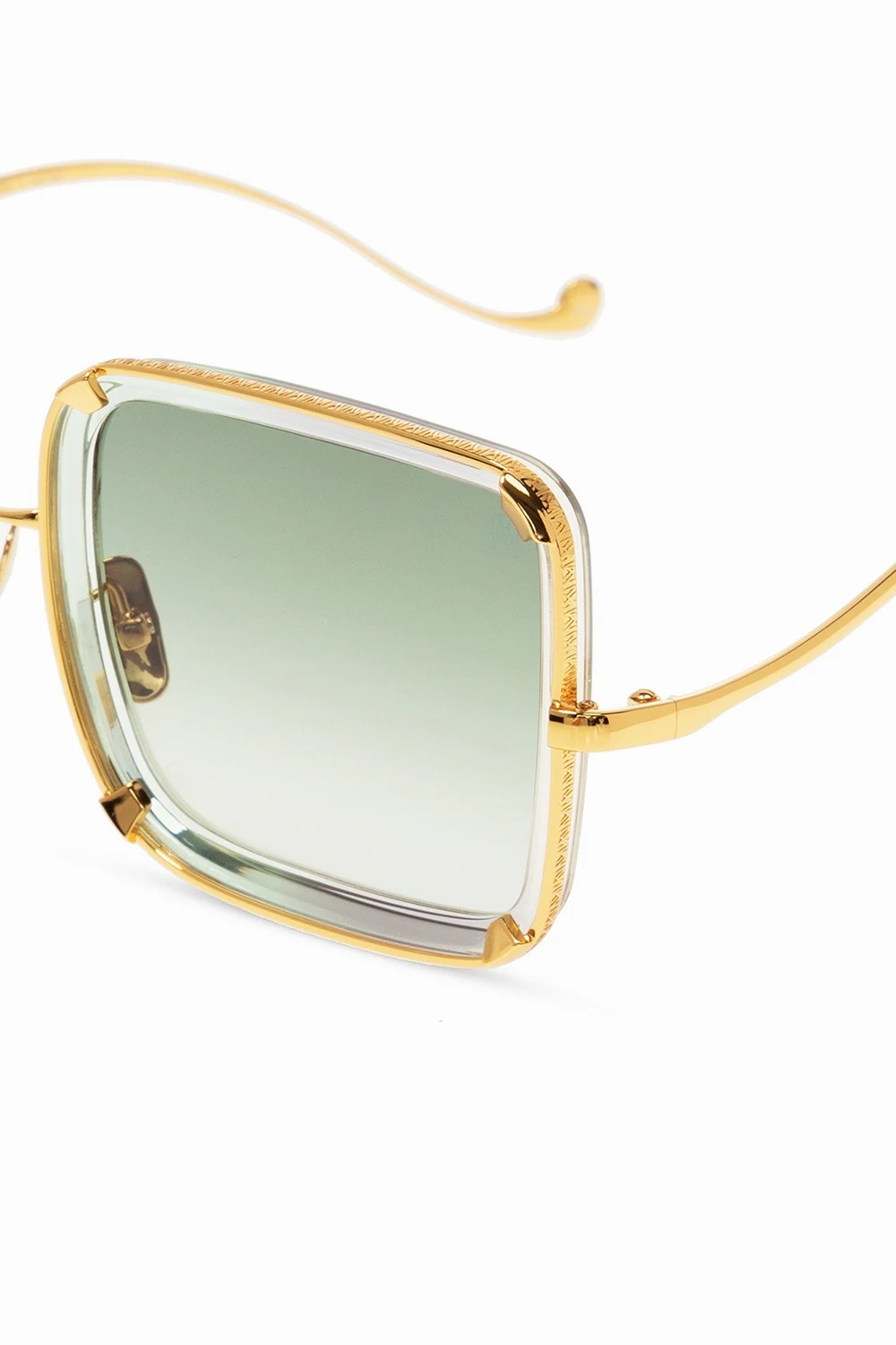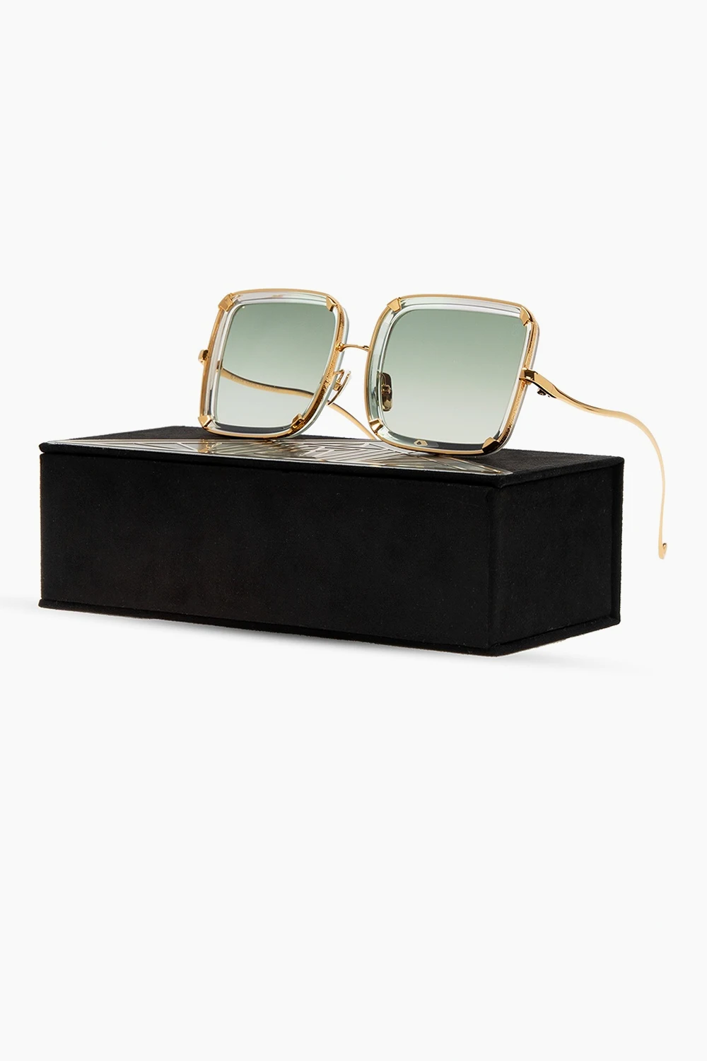 Gold-tone ‘White Moon’ sunglasses from Anna Karin Karlsson. Limited edition. With frames handmade in Japan and Italy and plated with 24k gold, this model features green Carl ZEISS sun lenses with azur back coating as well as an individual product number on the temples and a protective case.