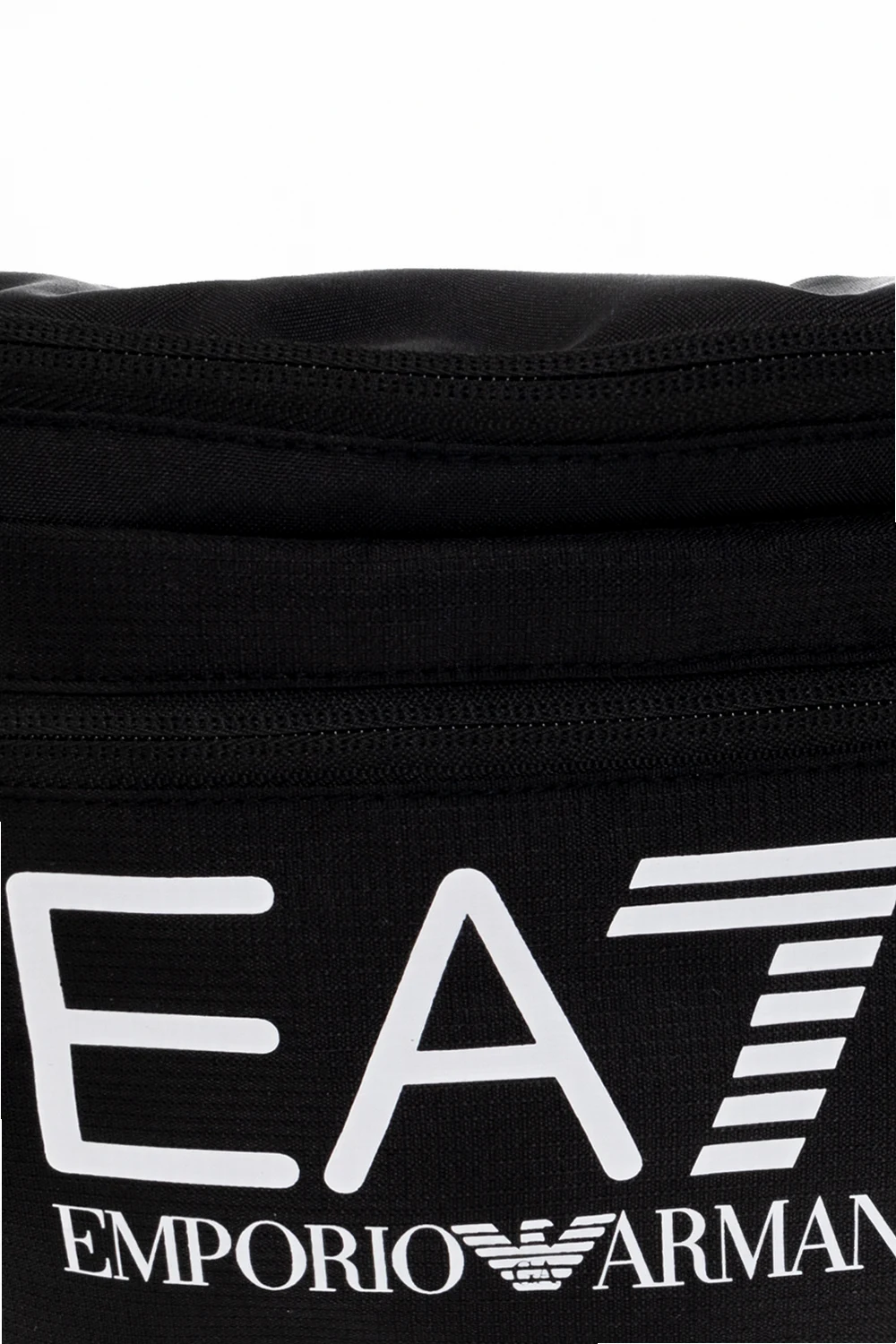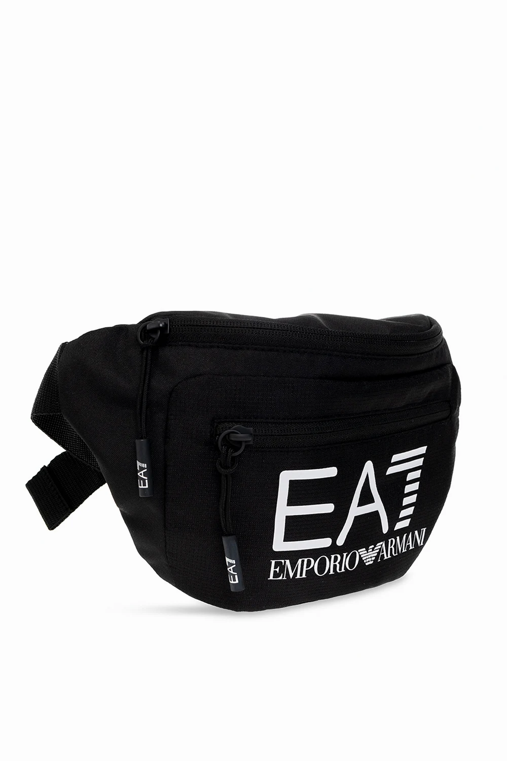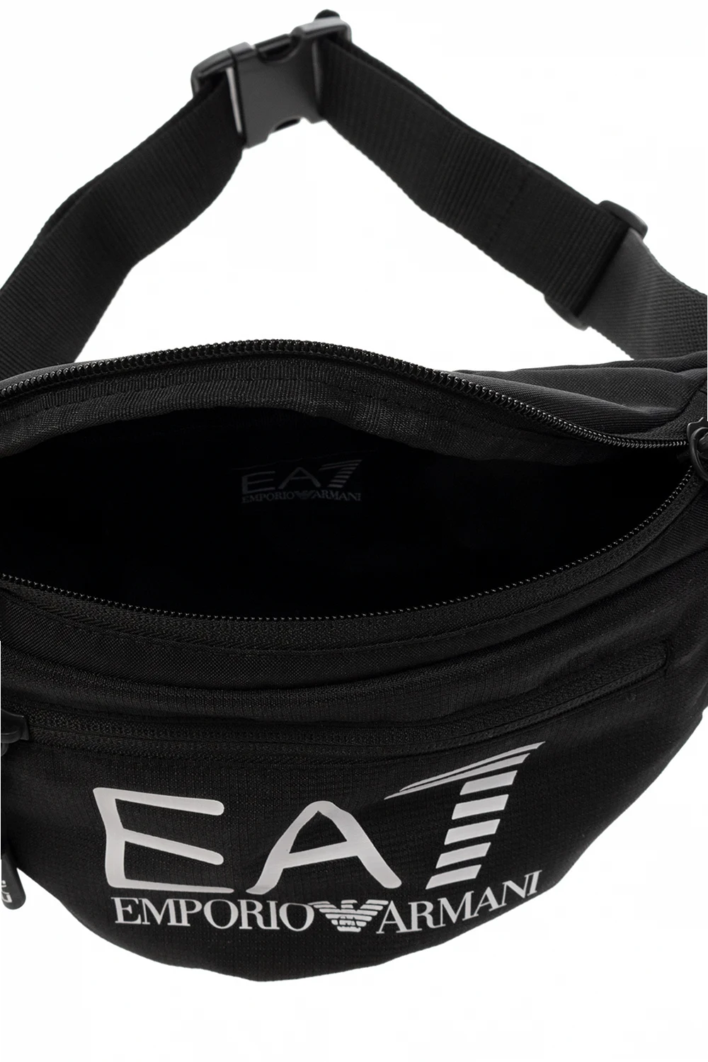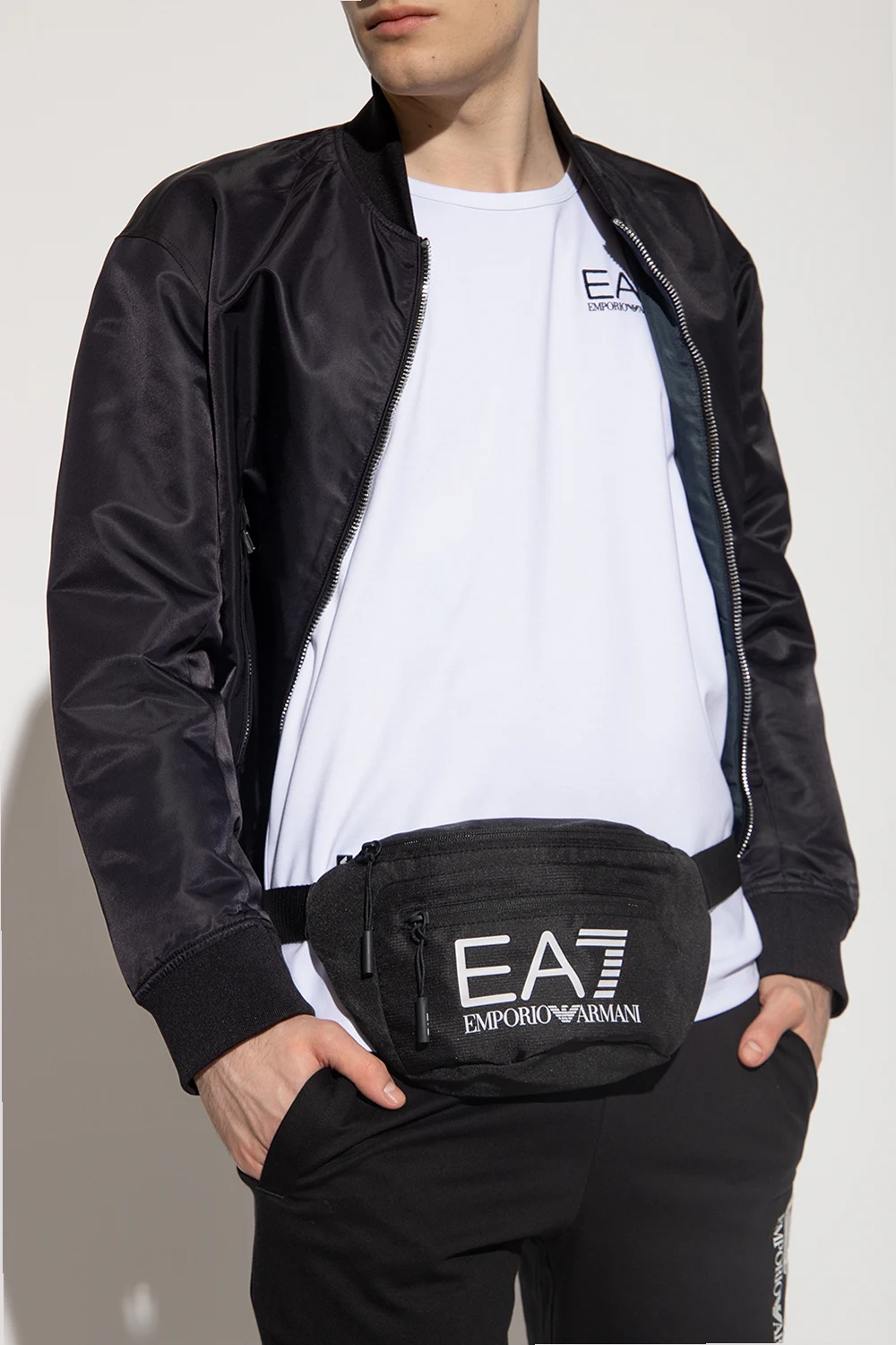 Black belt bag from EA7 Emporio Armani. Fastened with a zip, this model features a front zip pocket, white logo print, adjustable strap and one internal compartment.
