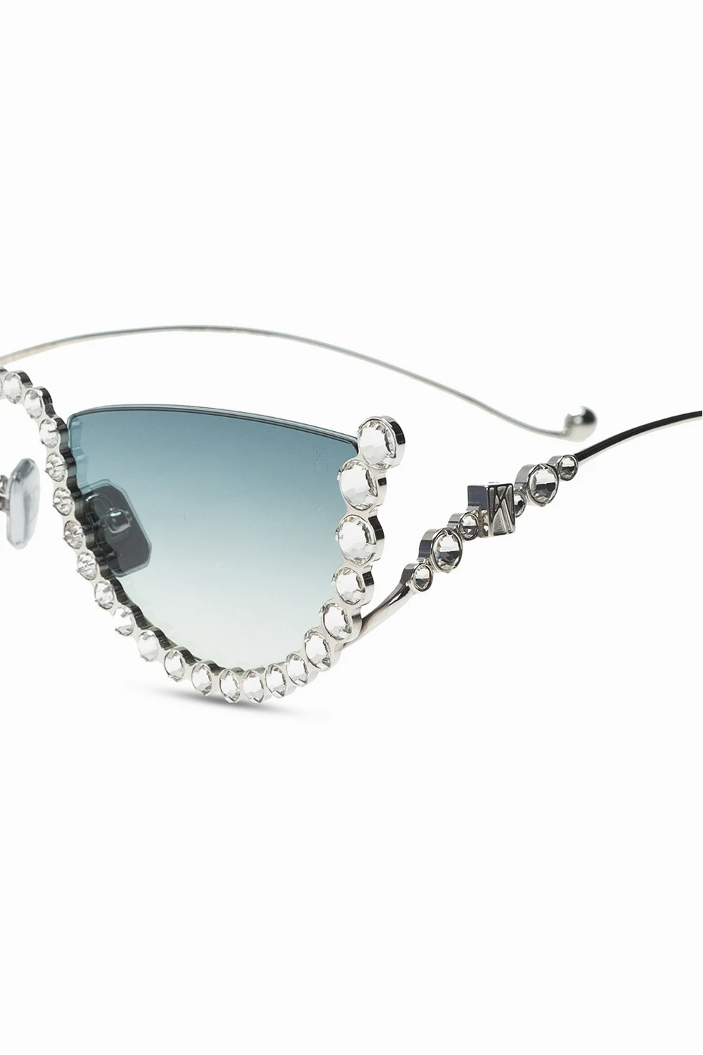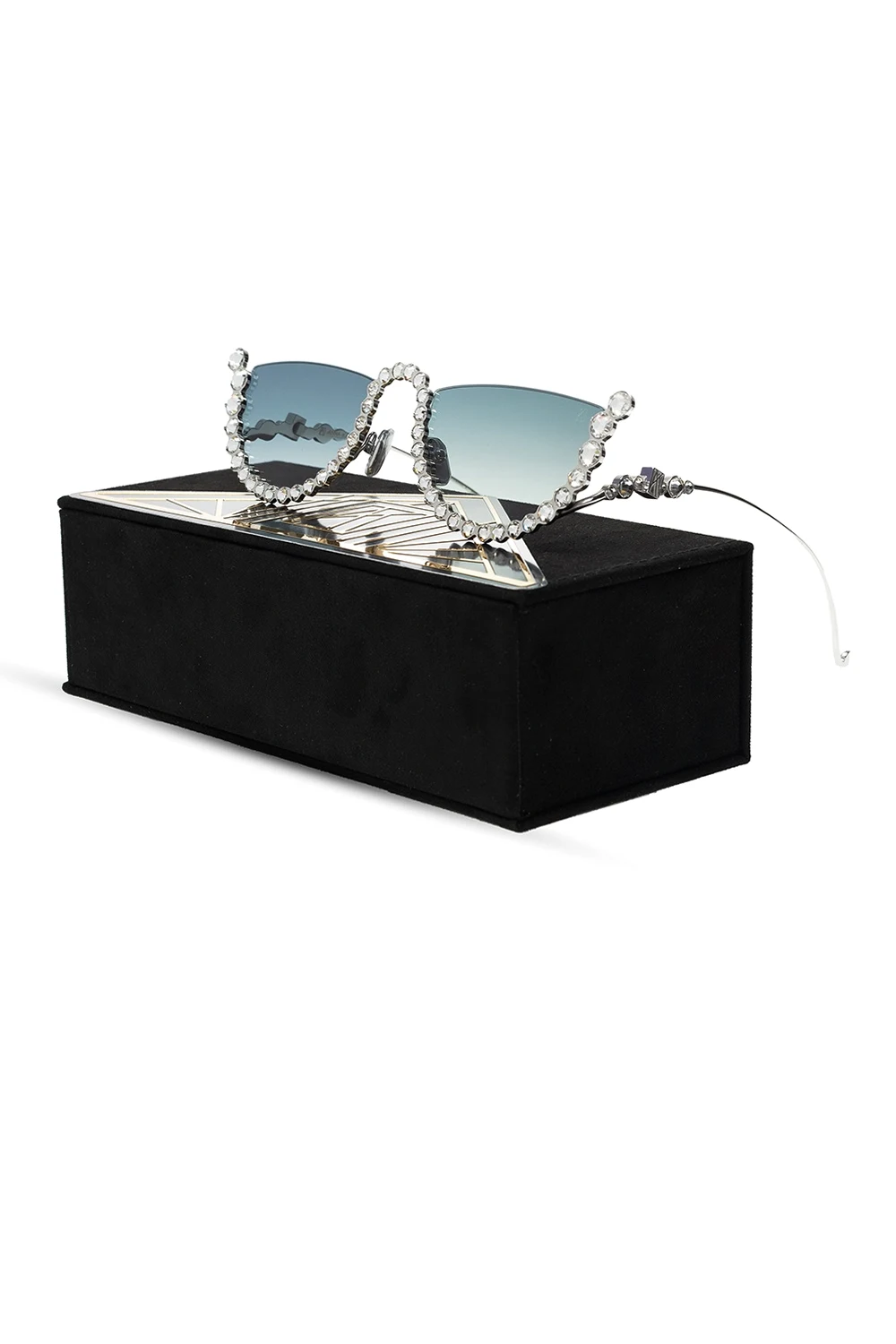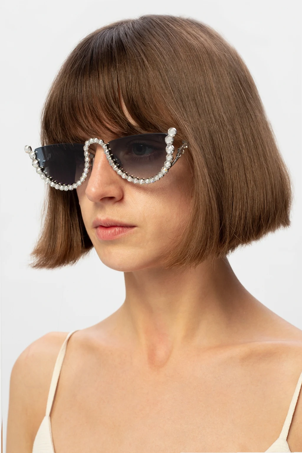 Silver-tone sunglasses from Anna Karin Karlsson. This pair comes embellished with white crystals and has certificated lenses in black and grey with protection against UVA/UVB rays. Protective case included.
