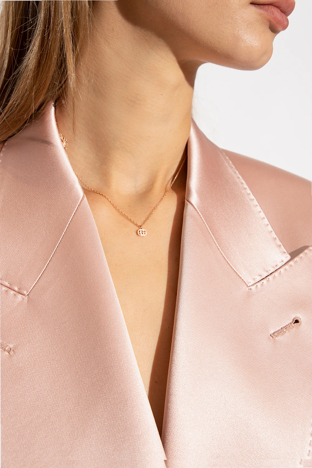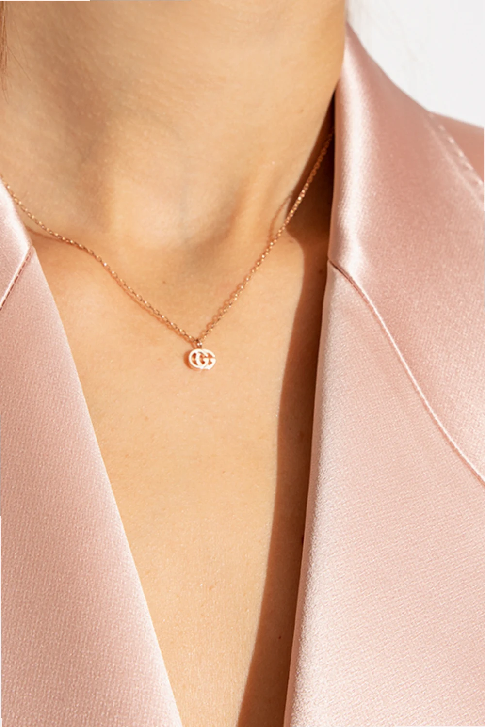 Necklace with a logo charm from Gucci. Made of 18k rose gold.