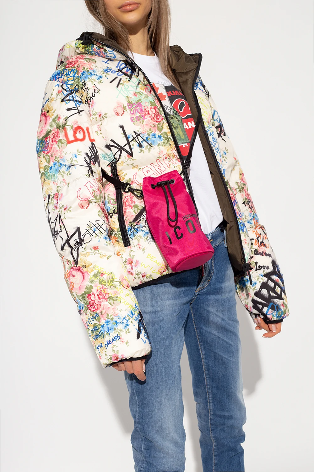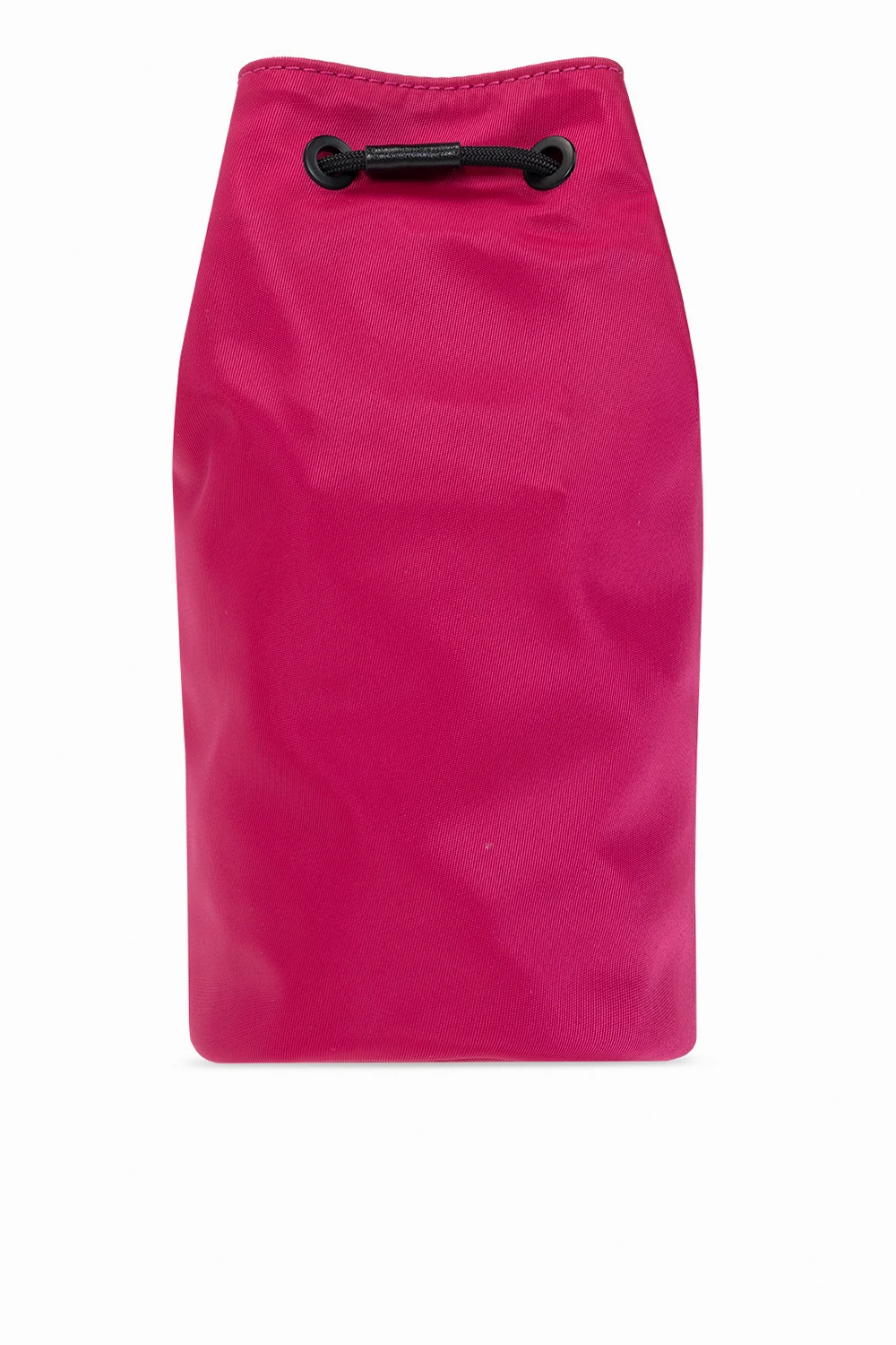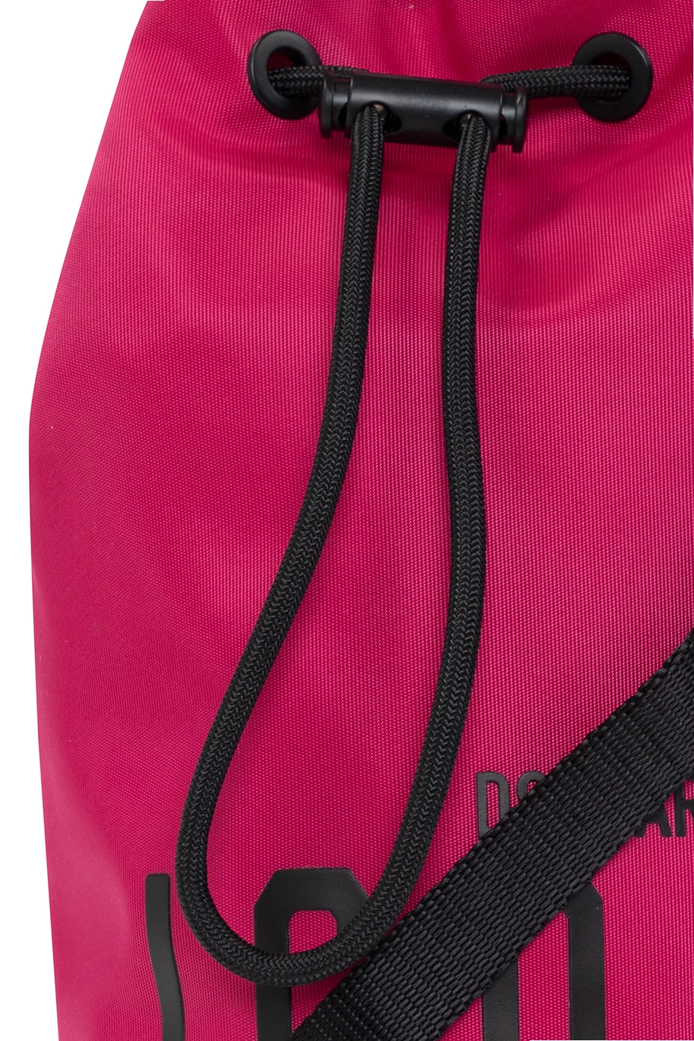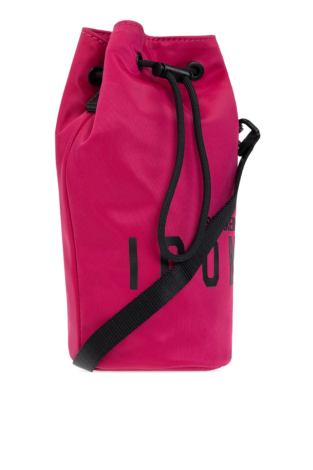 Pink bottle holder from Dsquared2. Printed with the brand's logo in black, this item features a drawstring fastening and a detachable and adjustable strap.