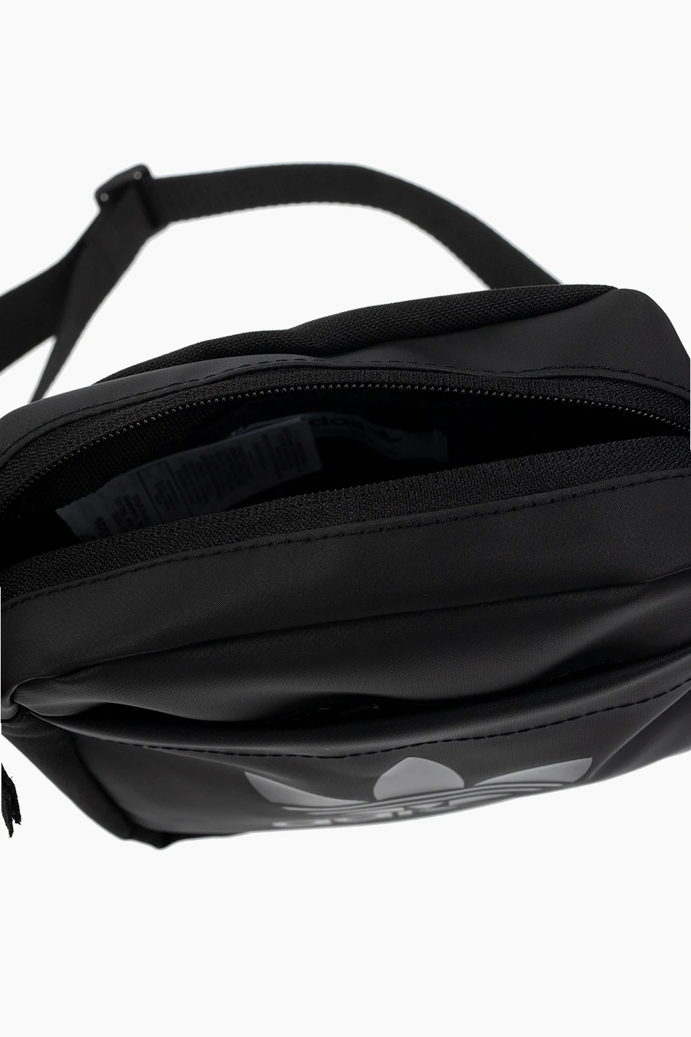 Black shoulder bag from ADIDAS Originals. Fastened with a zip, this garment features a black logo print, front zip pocket, adjustable shoulder strap, black metal hardware and one internal compartment with one slip pocket.