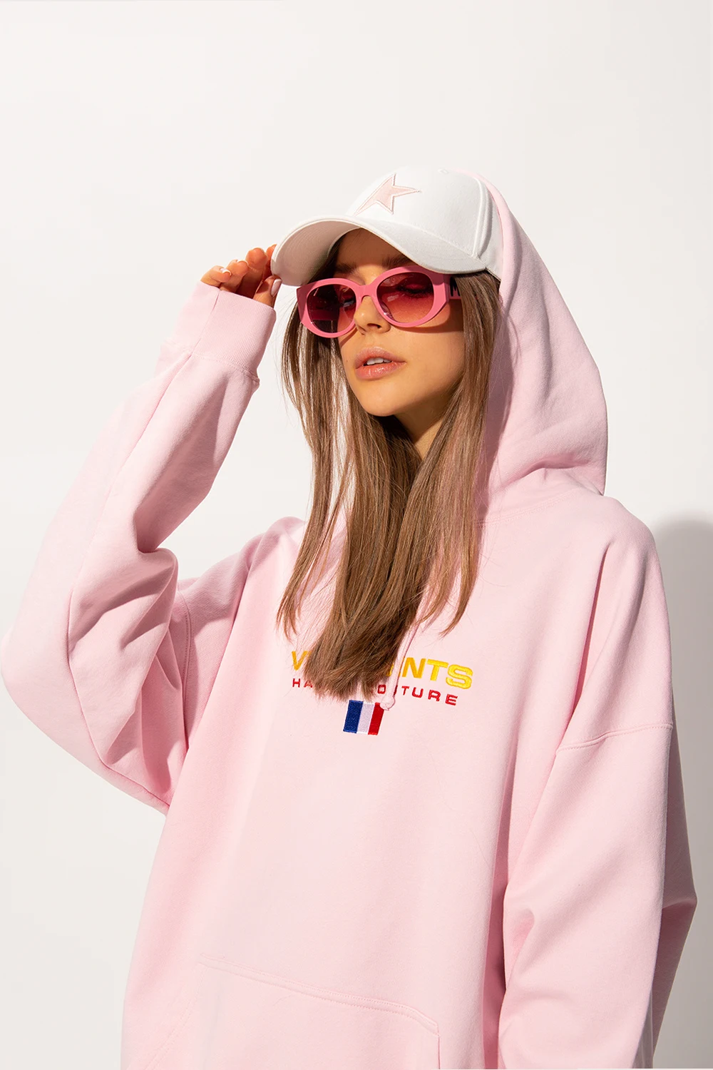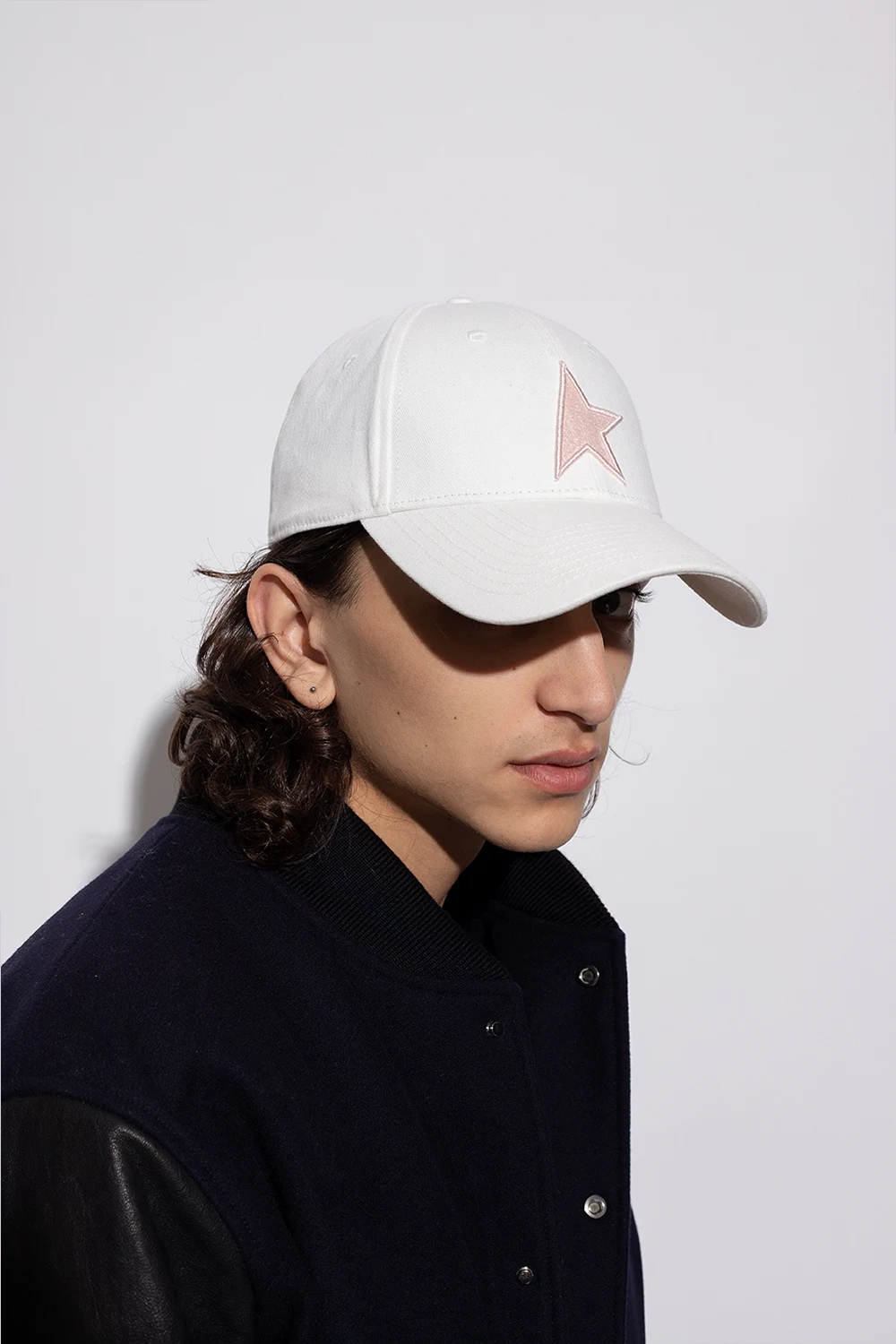 White baseball cap from Golden Goose. Crafted from cotton, this item features a light pink logo patch and adjustable strap at the back.