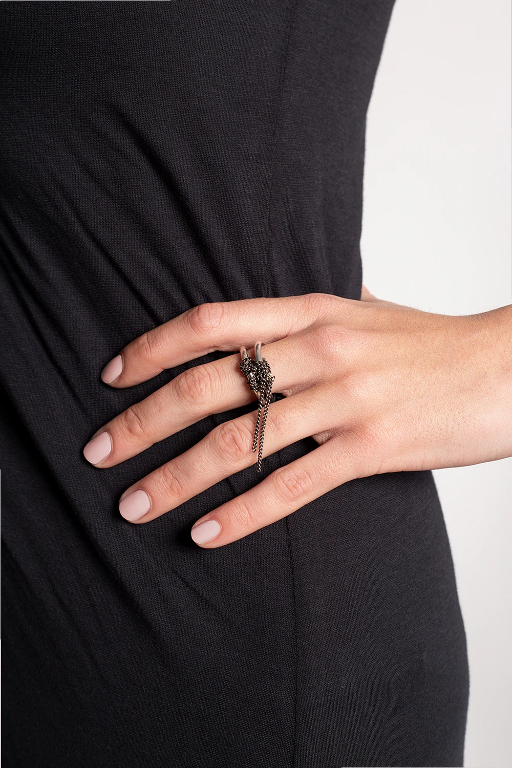 Silver-tone ring with a decorative insert from Ann Demeulemeester.