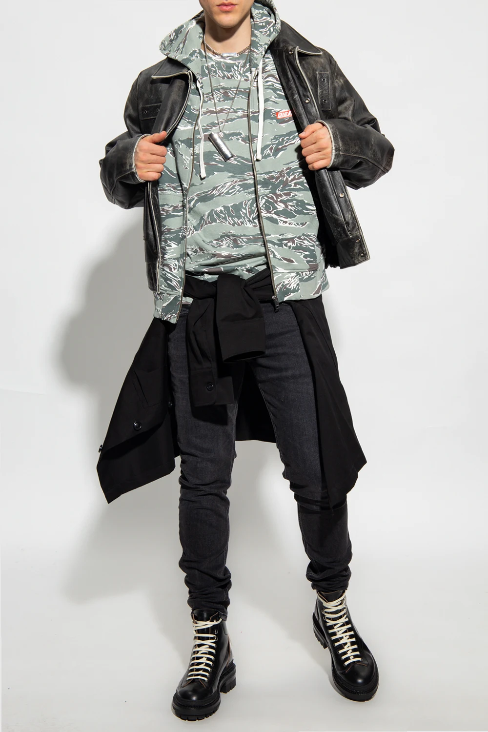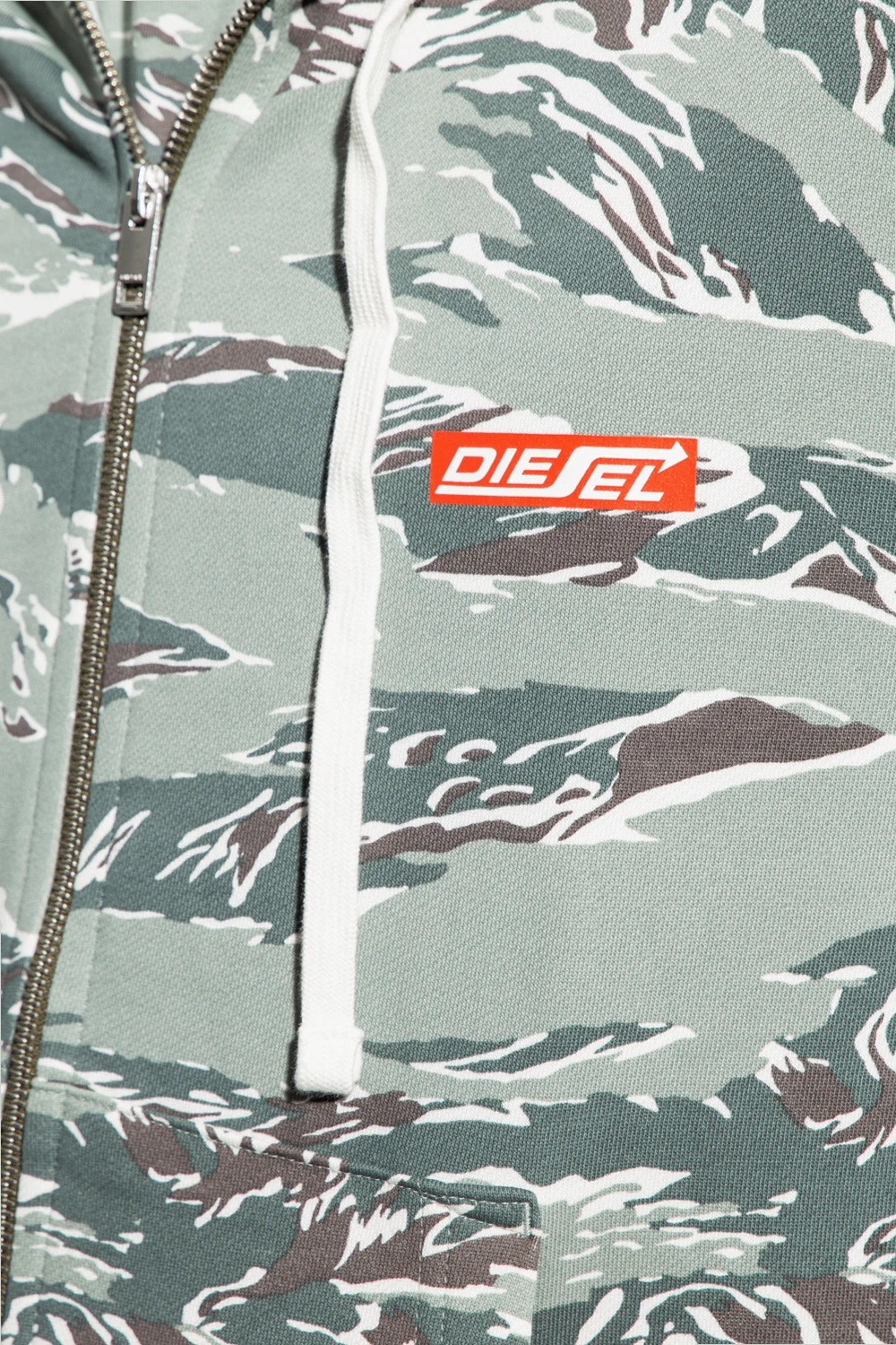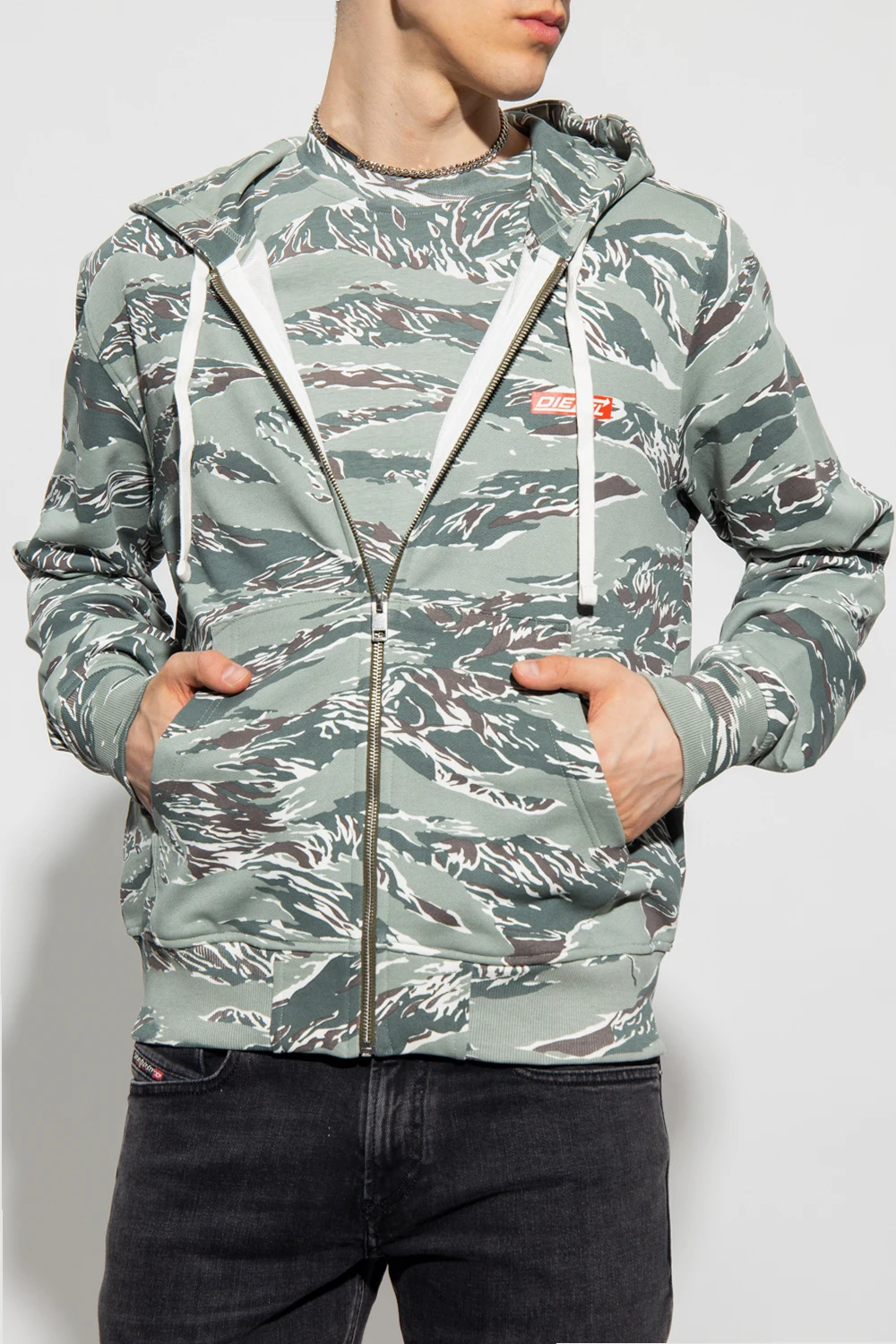 Multicolored 'S-GINN-HOOD-ZIP-HS1' patterned hoodie from Diesel. Made of cotton, this garment features a zip fastening, drawstring hood, pattern, red and white logo print, two slip pockets and ribbed trims at the hem and cuffs.