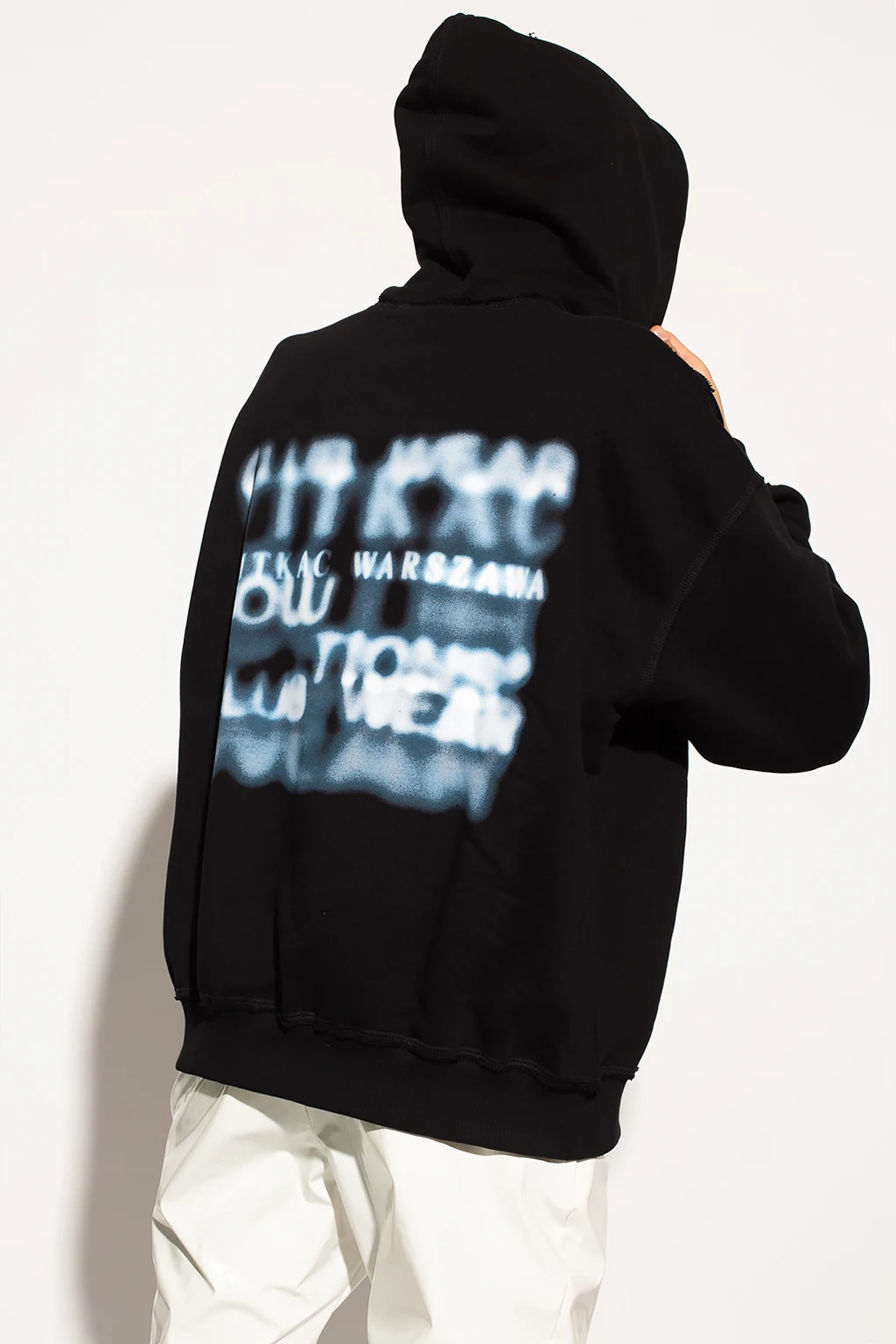 Black hoodie from MISBHV. Crafted from cotton, this style features a colourful graphic print on the front, raw-cut hems and an elasticated bottom hem and cuffs. Item designed to celebrate the 10th anniversary of VITKAC.