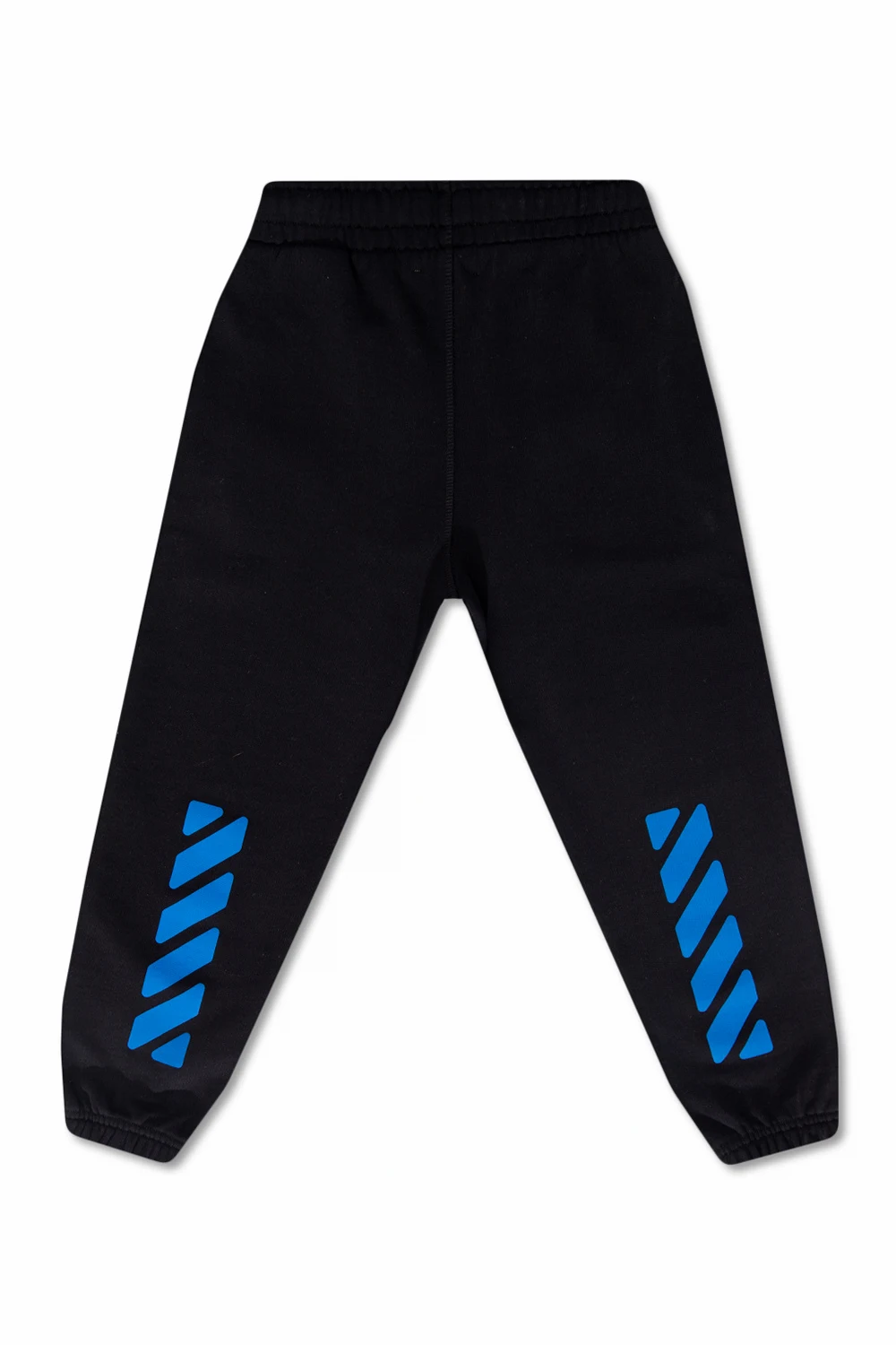 Black sweatpants from Off-White Kids. Made of cotton, this pair features an elastic waistband, a blue logo print, two front pockets and elasticated cuffs.