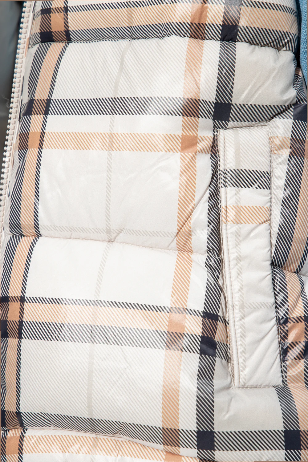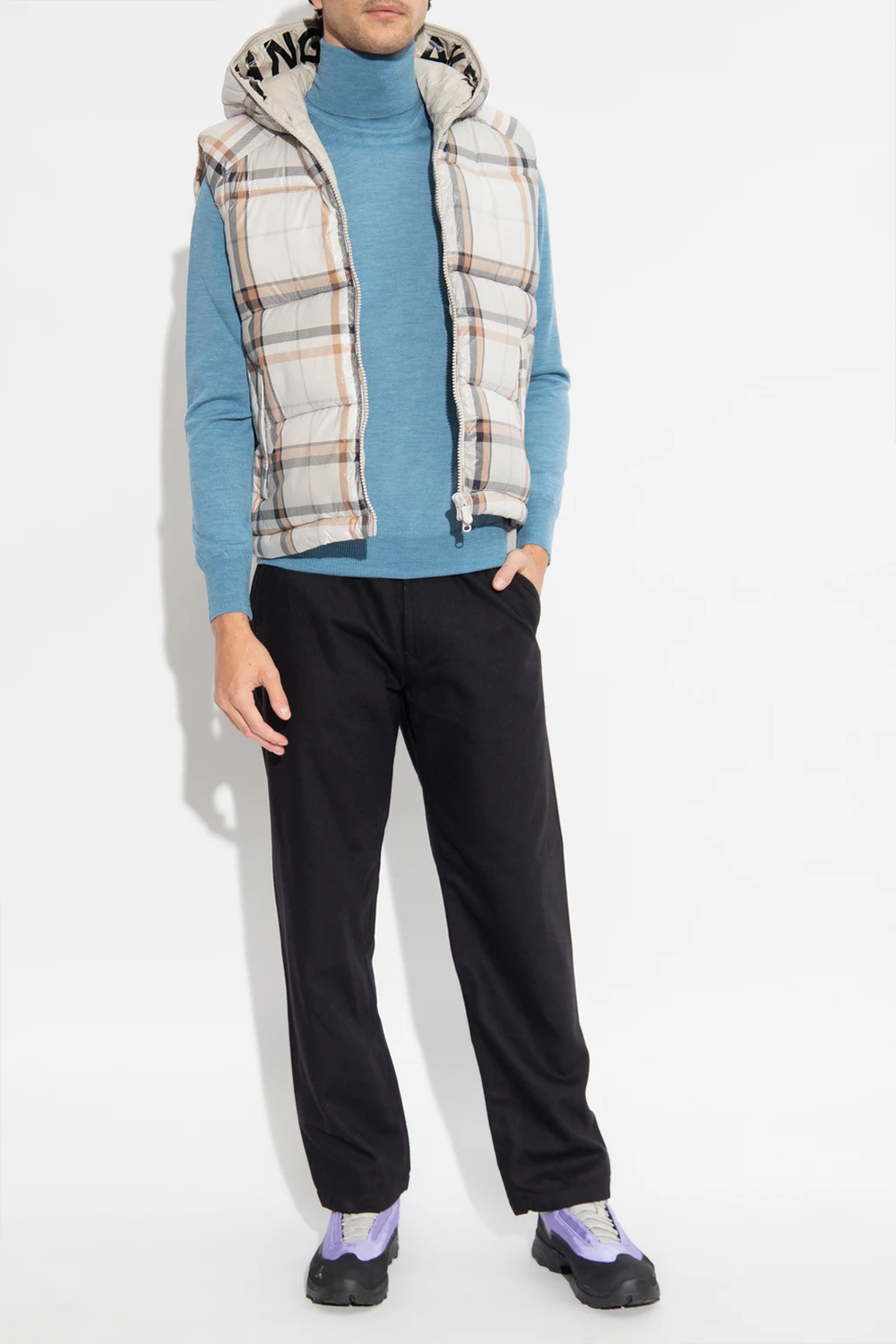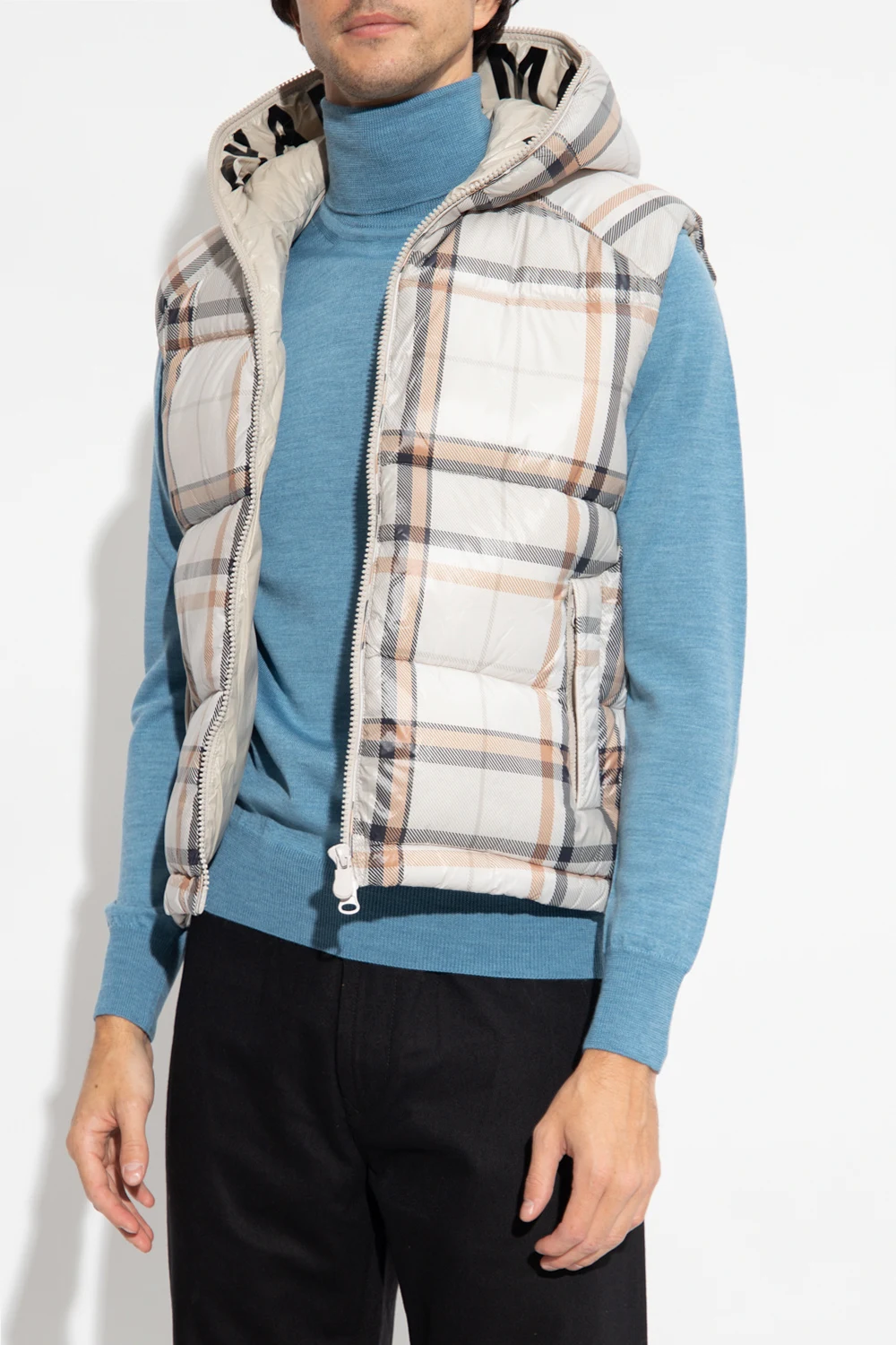Cream ‘Zev’ quilted vest from Save The Duck. Padded with synthetic Plumtech® down, this breathable, wind and water-resistant jacket is complete with a two-way zip, black and beige check pattern, hood with a rubber logo patch and ‘Changemaker’ lining and two front zip pockets. Temperature range: from -10°C to 14°C.