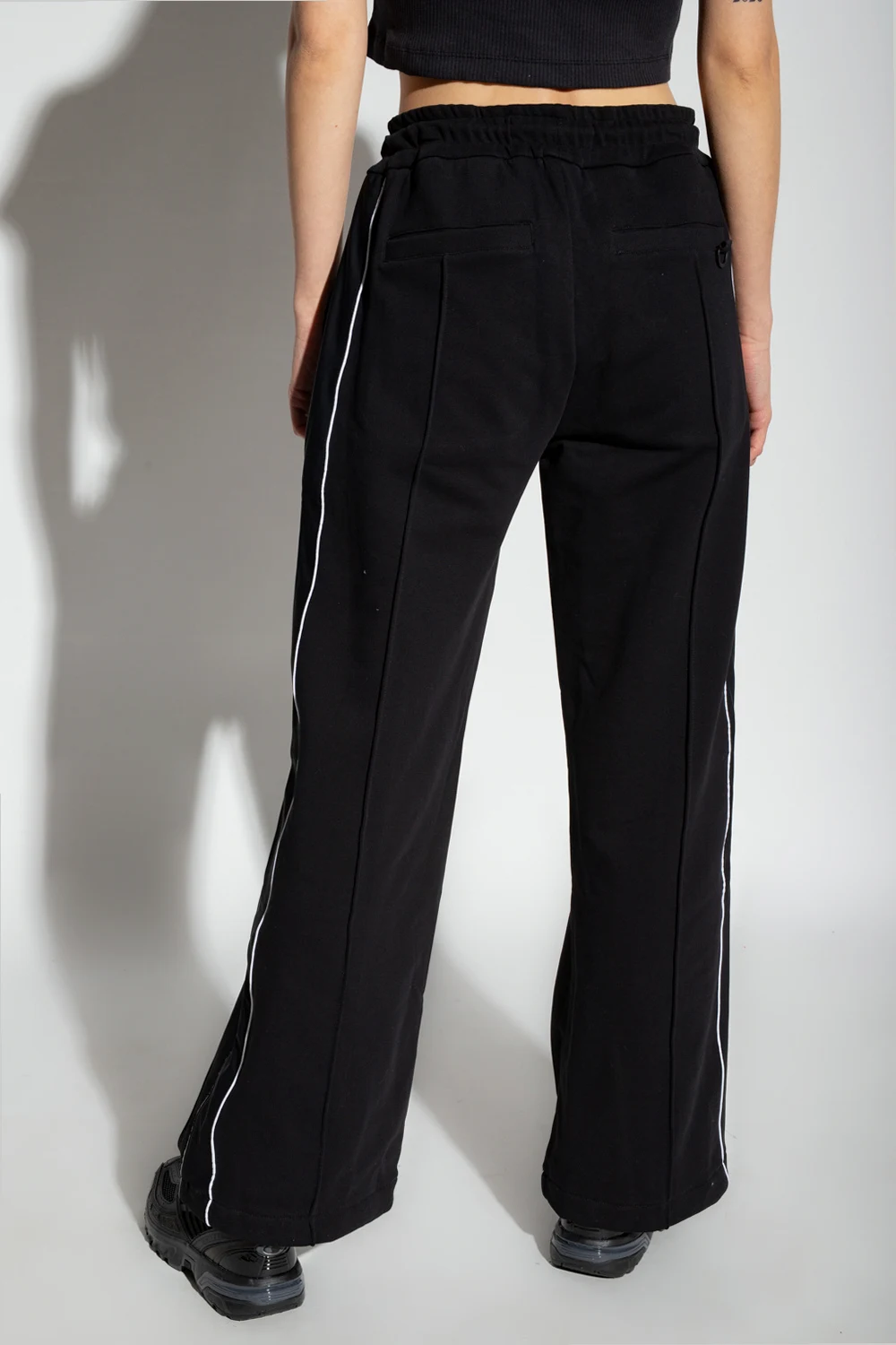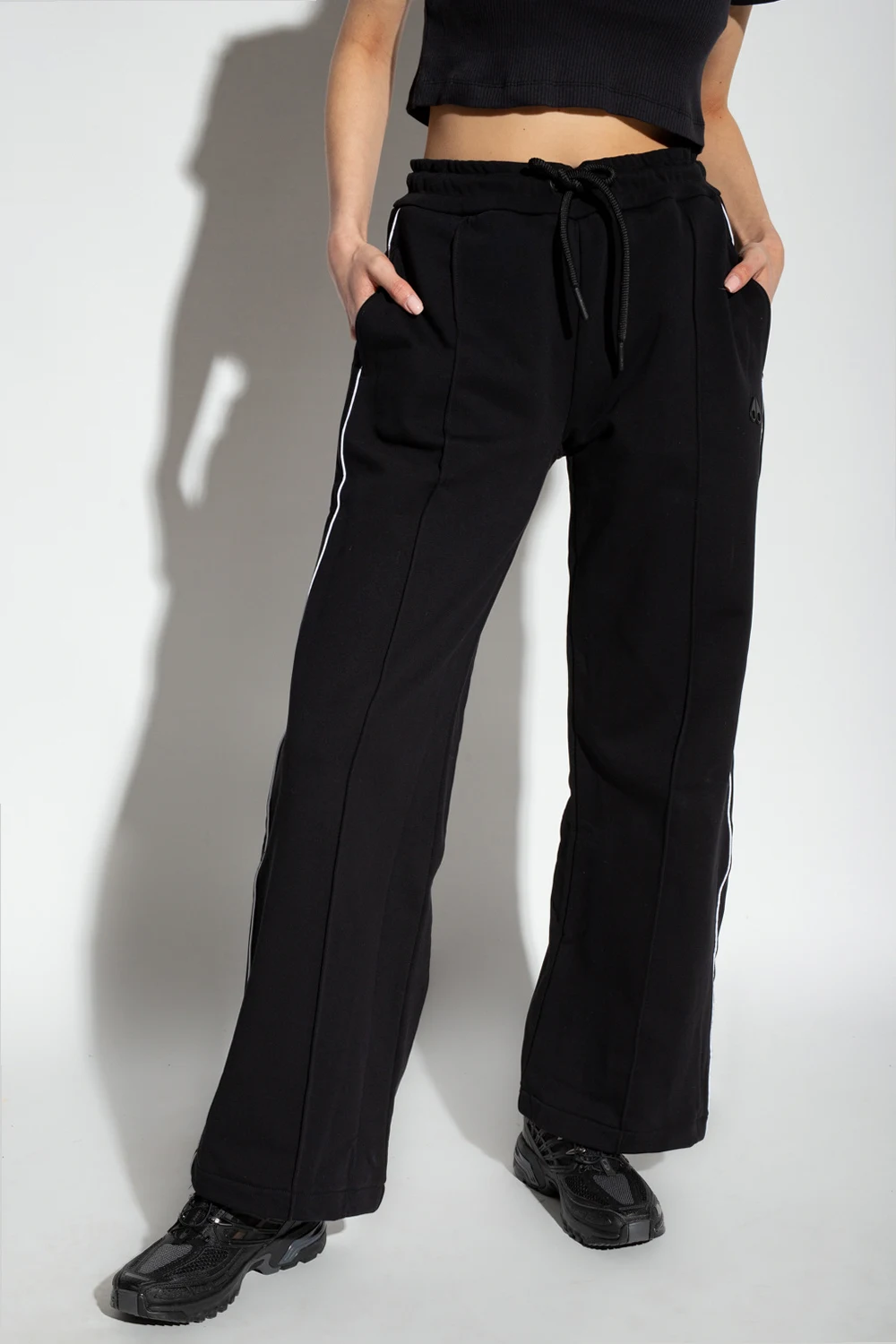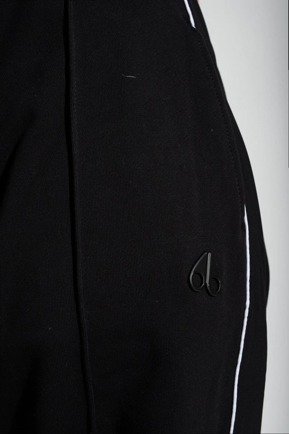 Black ‘Malibu’ sweatpants from Moose Knuckles. Crafted from cotton, this pair features an elastic waistband with drawstrings, logo appliqué, cream side stripes, two front pockets, two back pockets and straight loose-fitting legs.