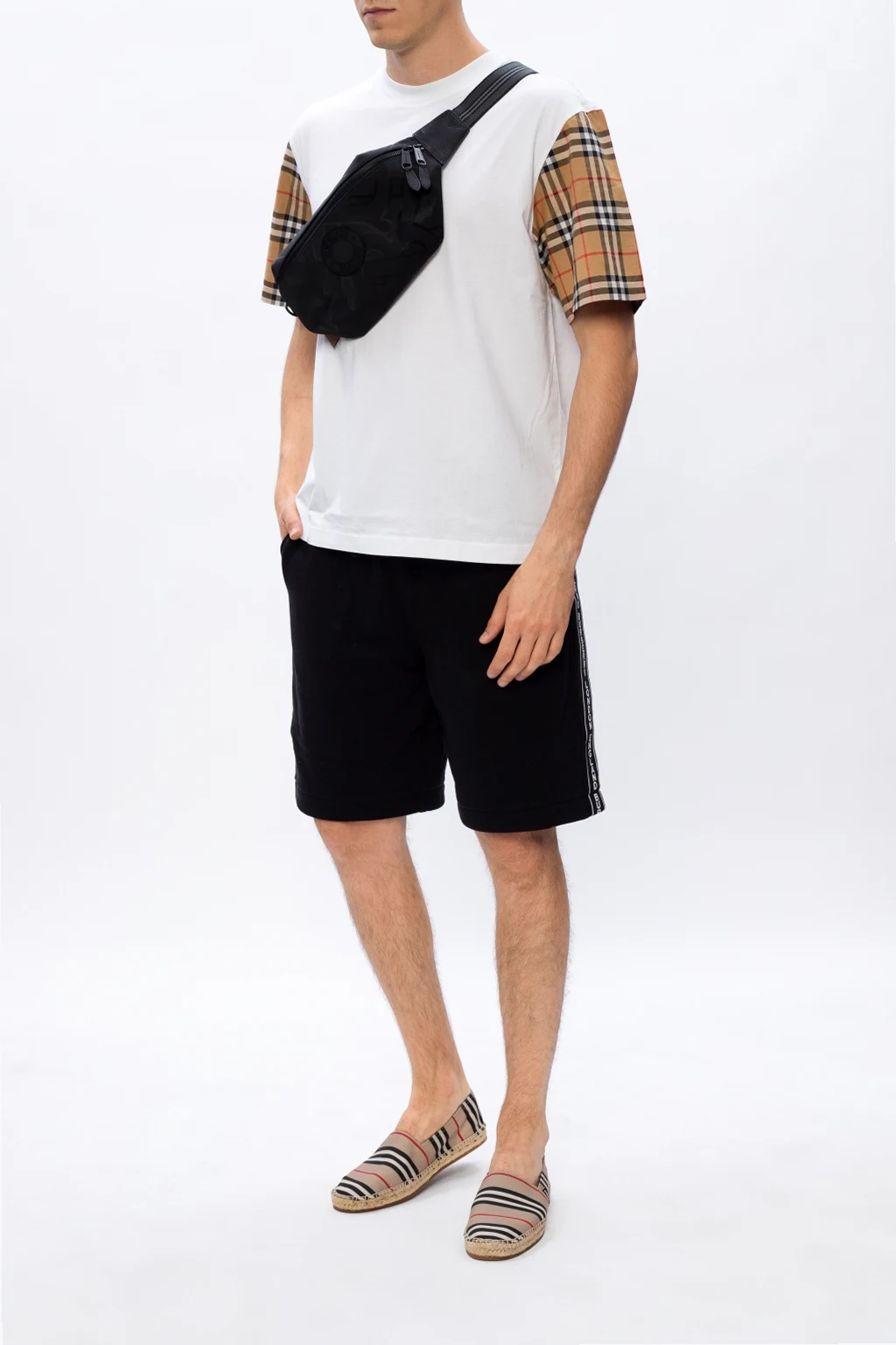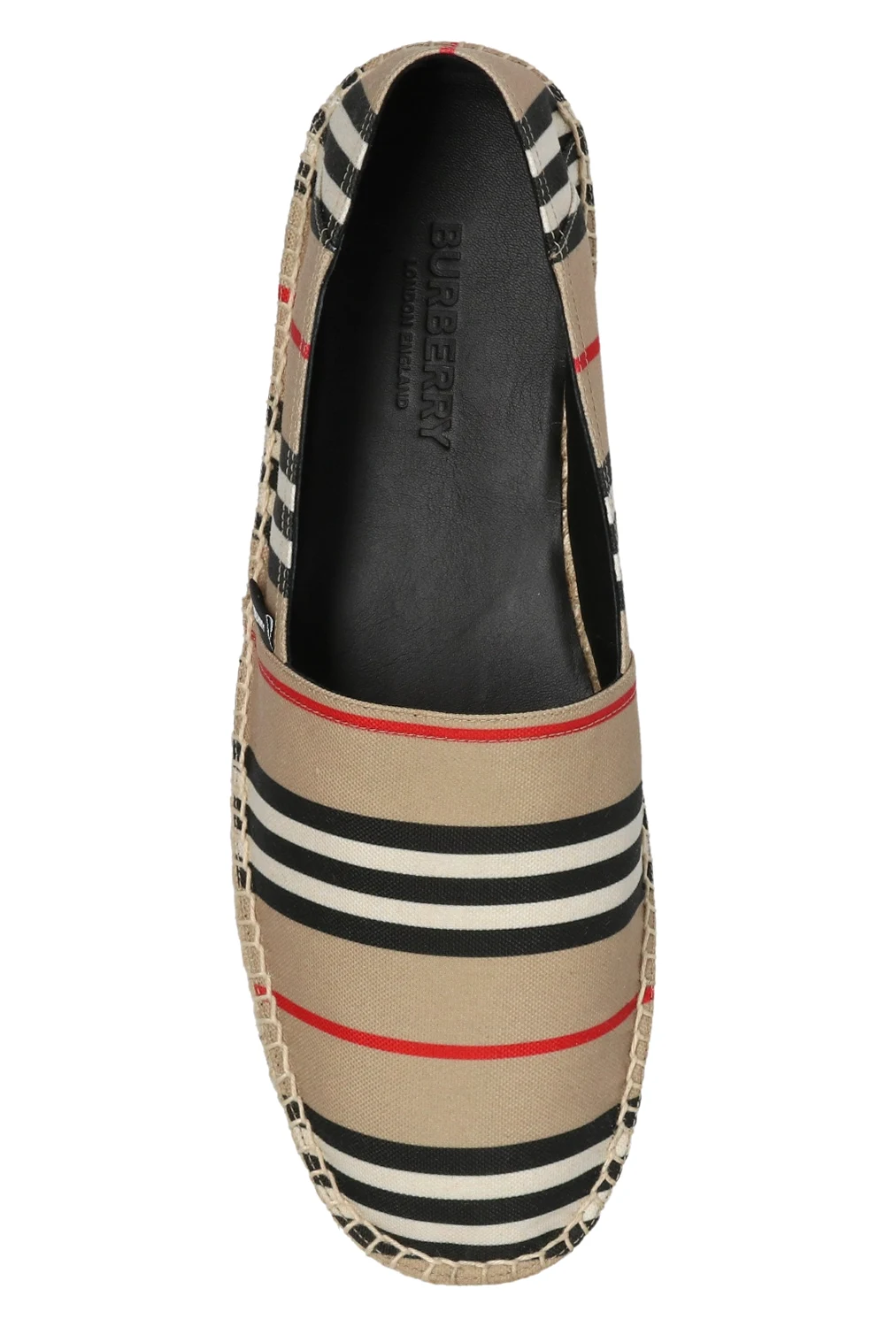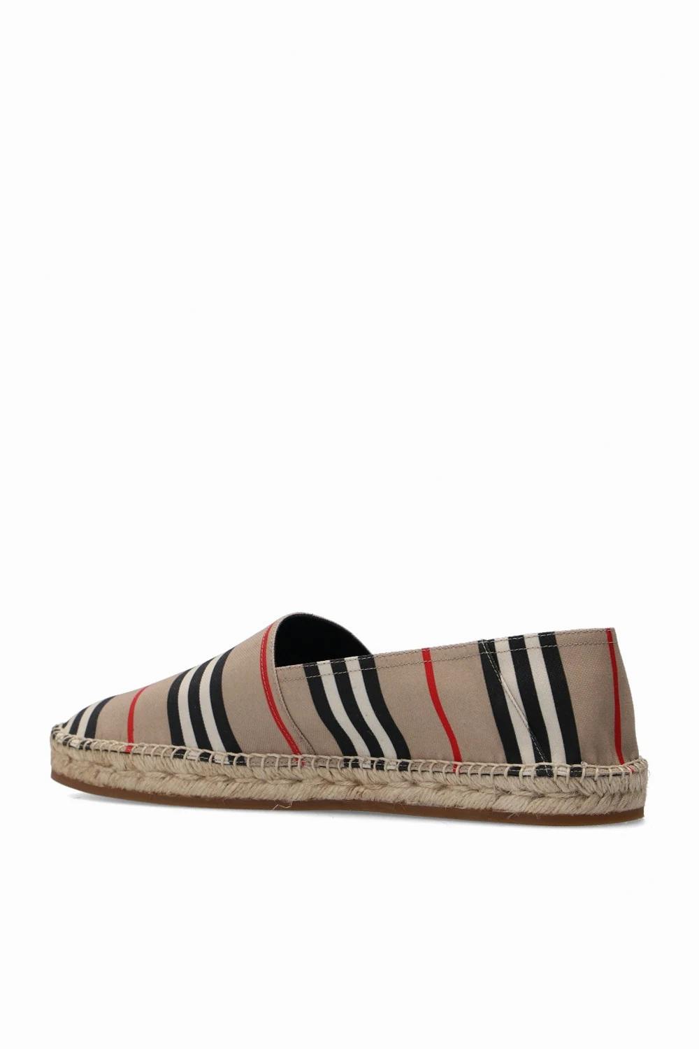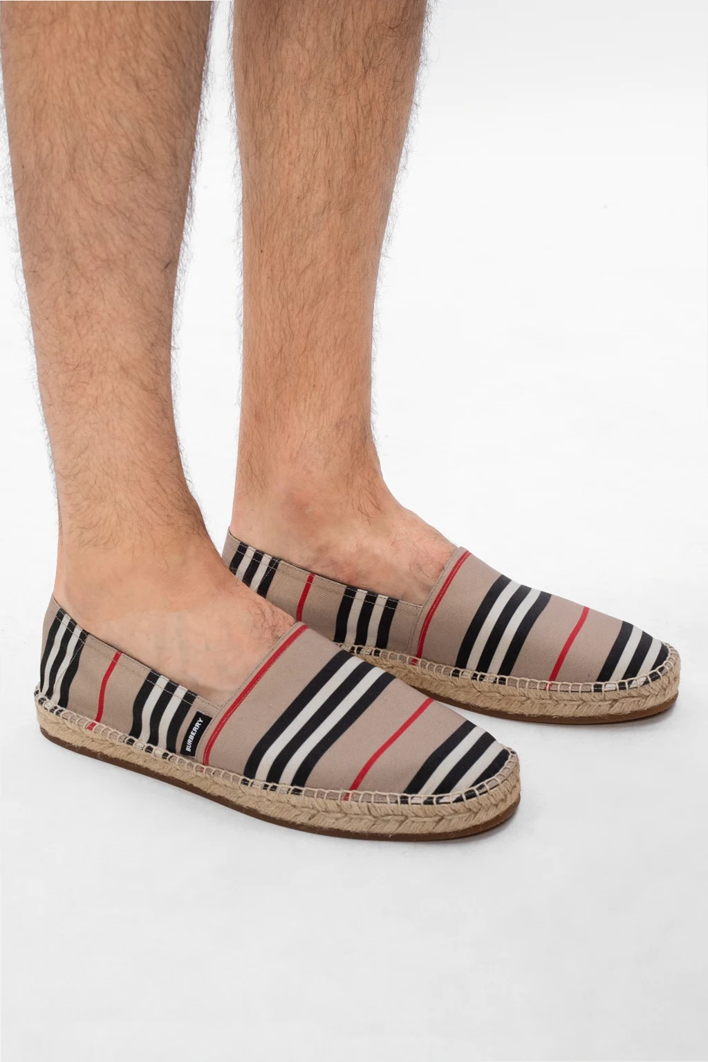Beige ‘Alport’ espadrilles from Burberry. Illustrated with a colourful stripe pattern all over, this pair is complete with a logo detail and beige rubber sole at the base.