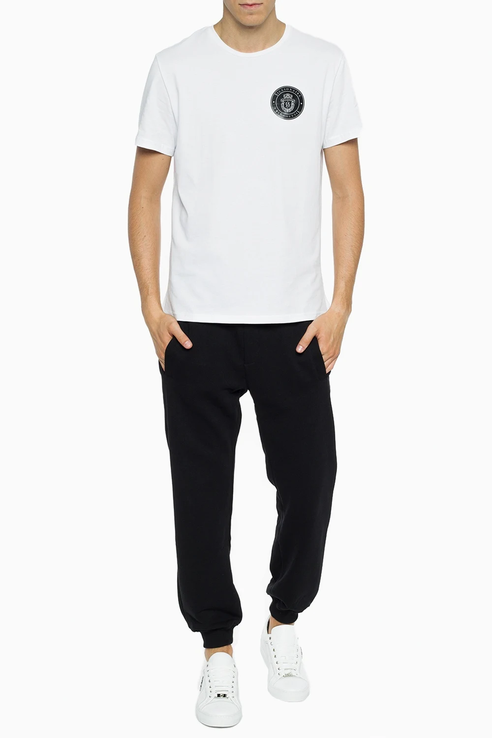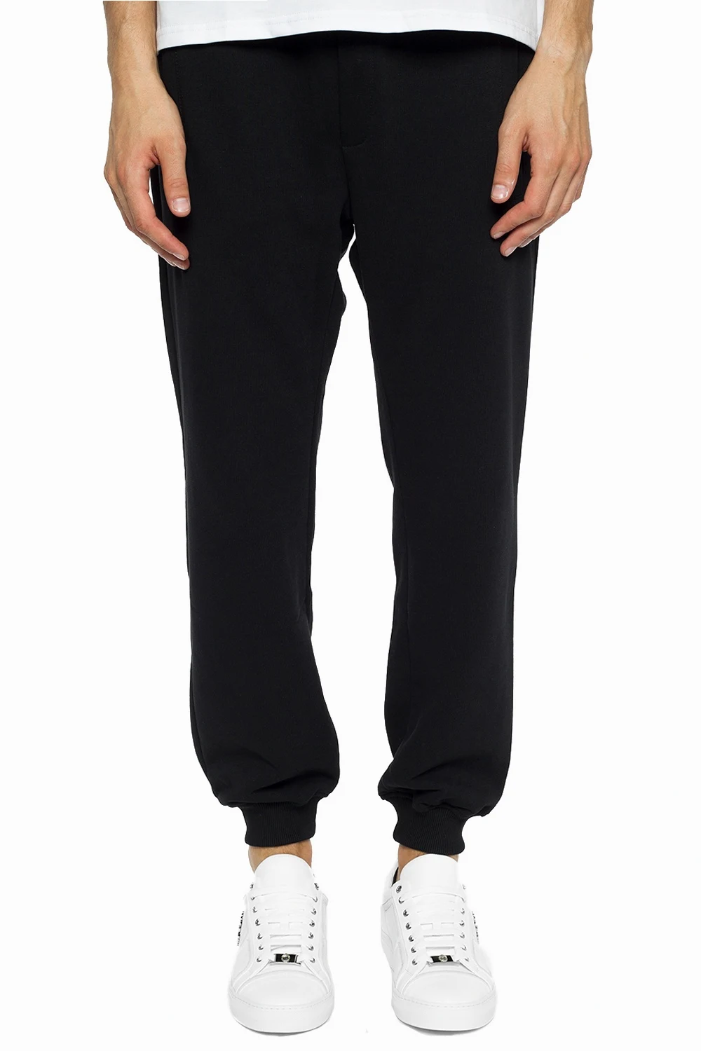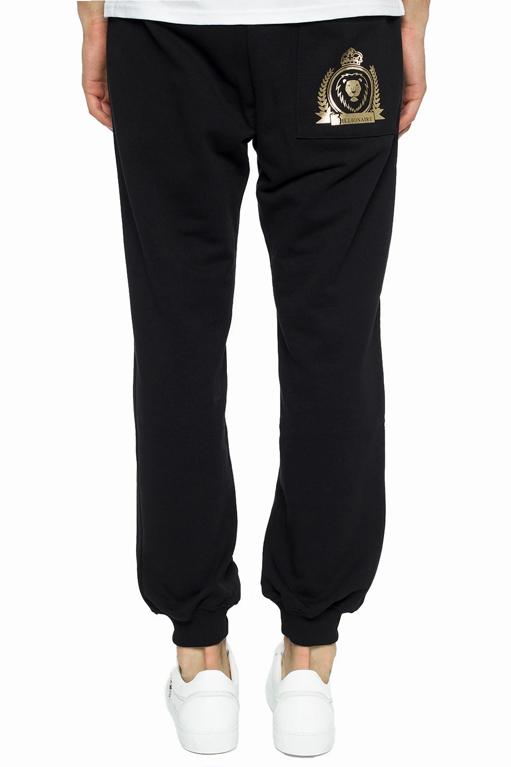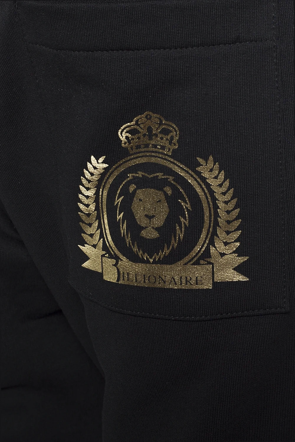 Black cotton sweatpants from Billionaire. Drawstring waist. Elasticated cuffs. 2 front pockets. Printed gold-tone signature logo on the rear pocket.